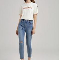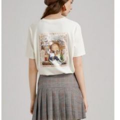hopeshow商场同款红袖秋季2020新款女装 动物字母印花圆领套头T恤