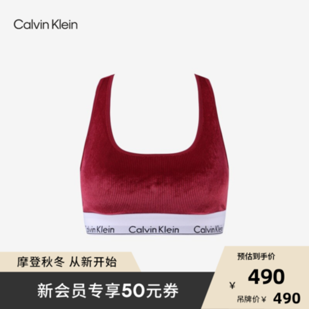 CK内衣秋冬女士天鹅绒经典薄垫工字背心款透气运动文胸QF5509AD
