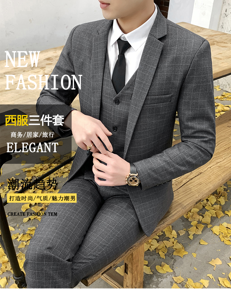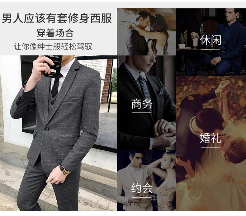 男士西服套装商务休闲西装男结婚新郎伴郎团礼服修身职业正装外套