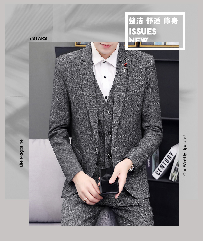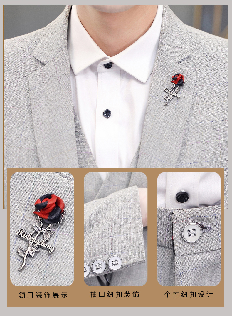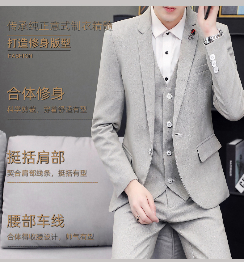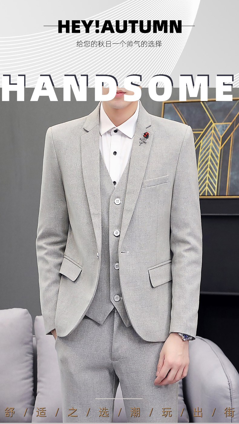 男士西服套装新郎结婚伴郎团礼服韩版修身小西装男职业正装三件套