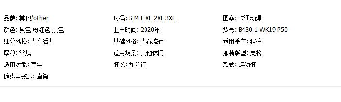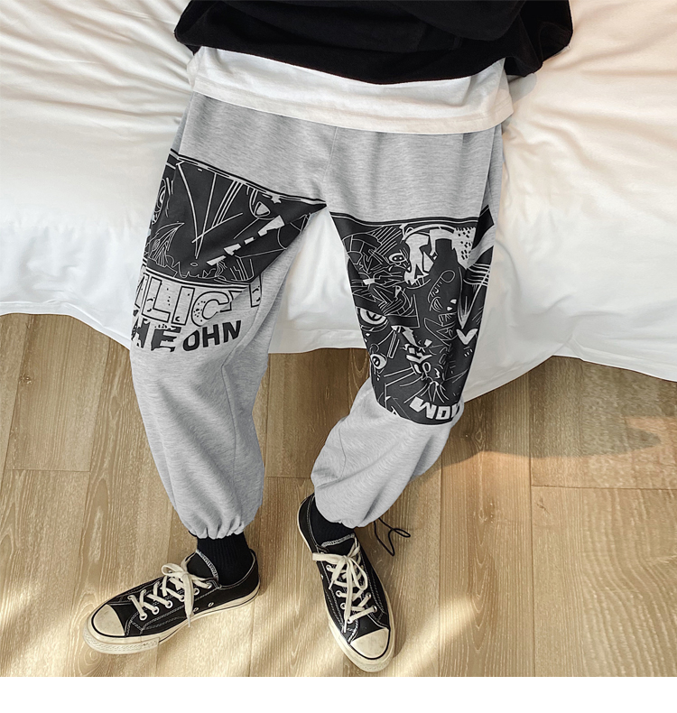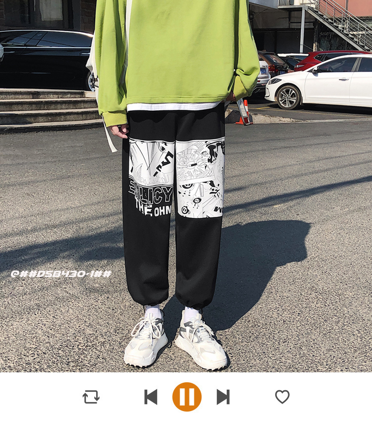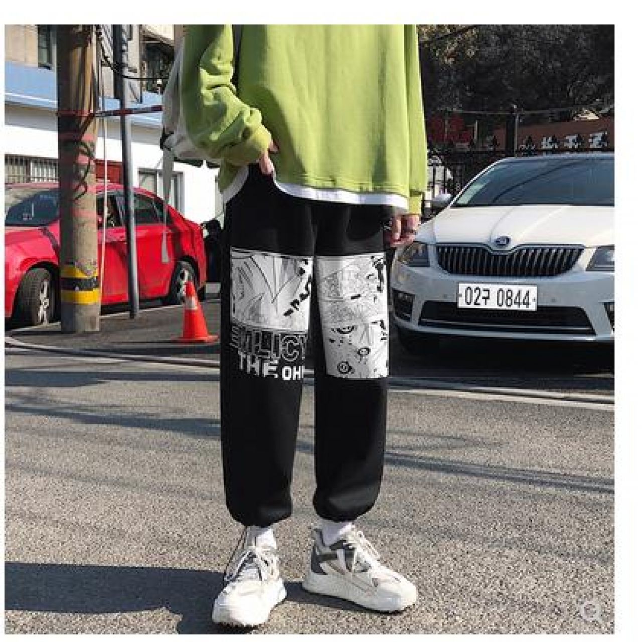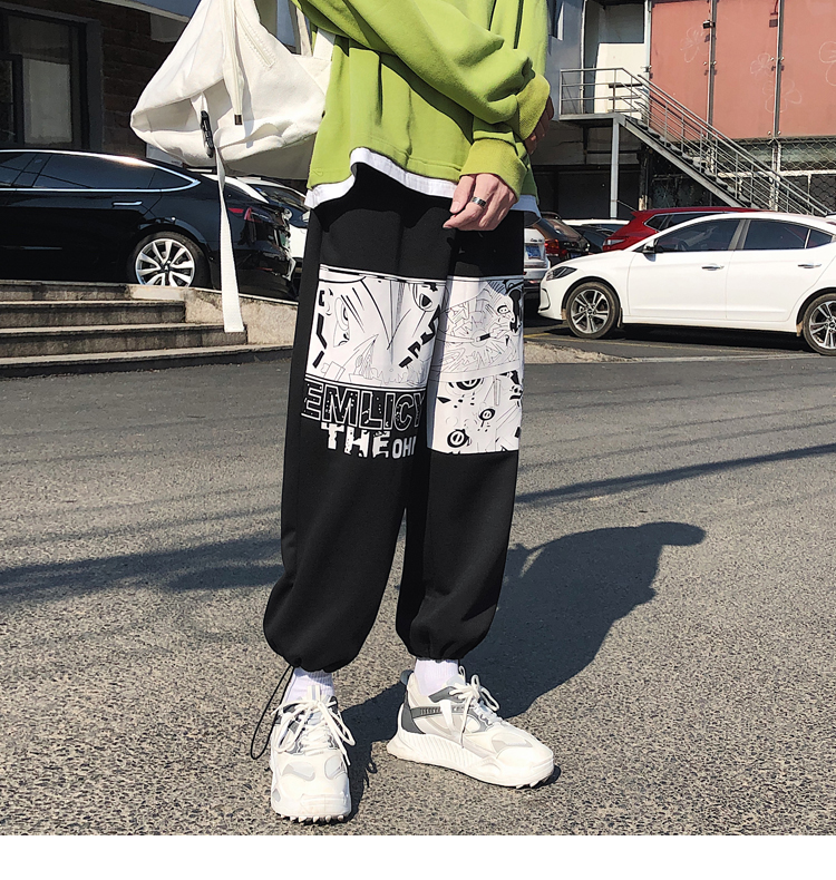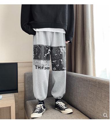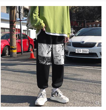【潜力新款推荐】 2020港风新款动漫卫裤男 宽松休闲束脚裤