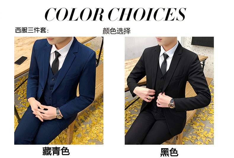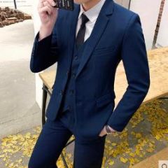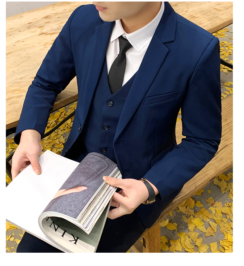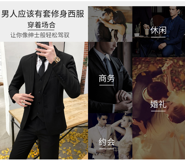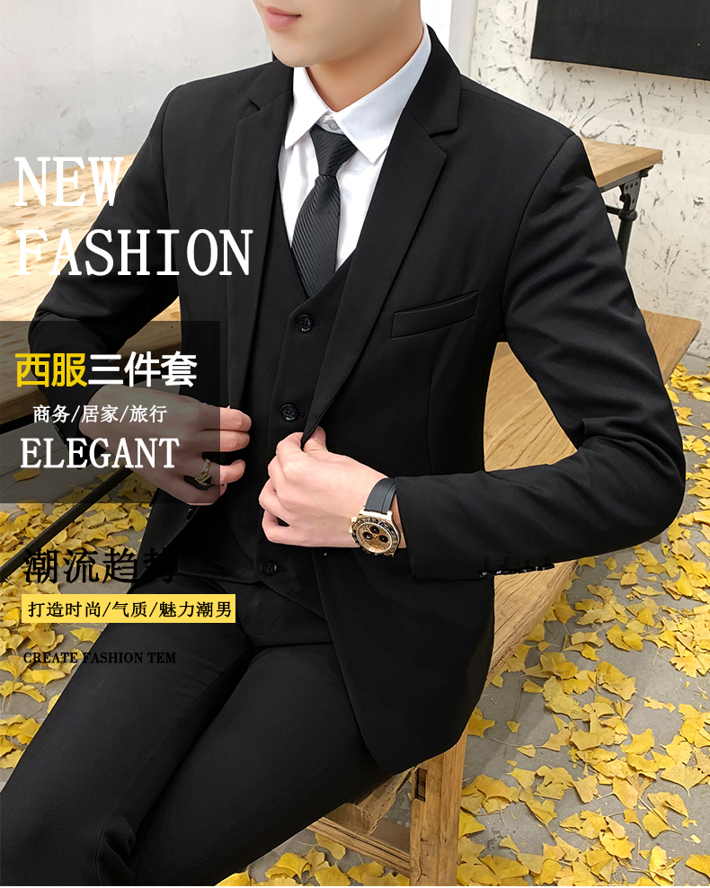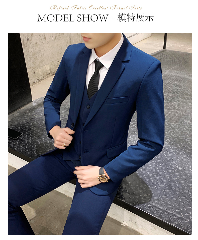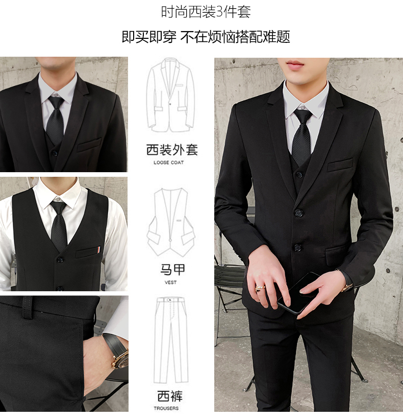 商务休闲西装男韩版修身西服套装男士职业三件套正装新郎结婚礼服
