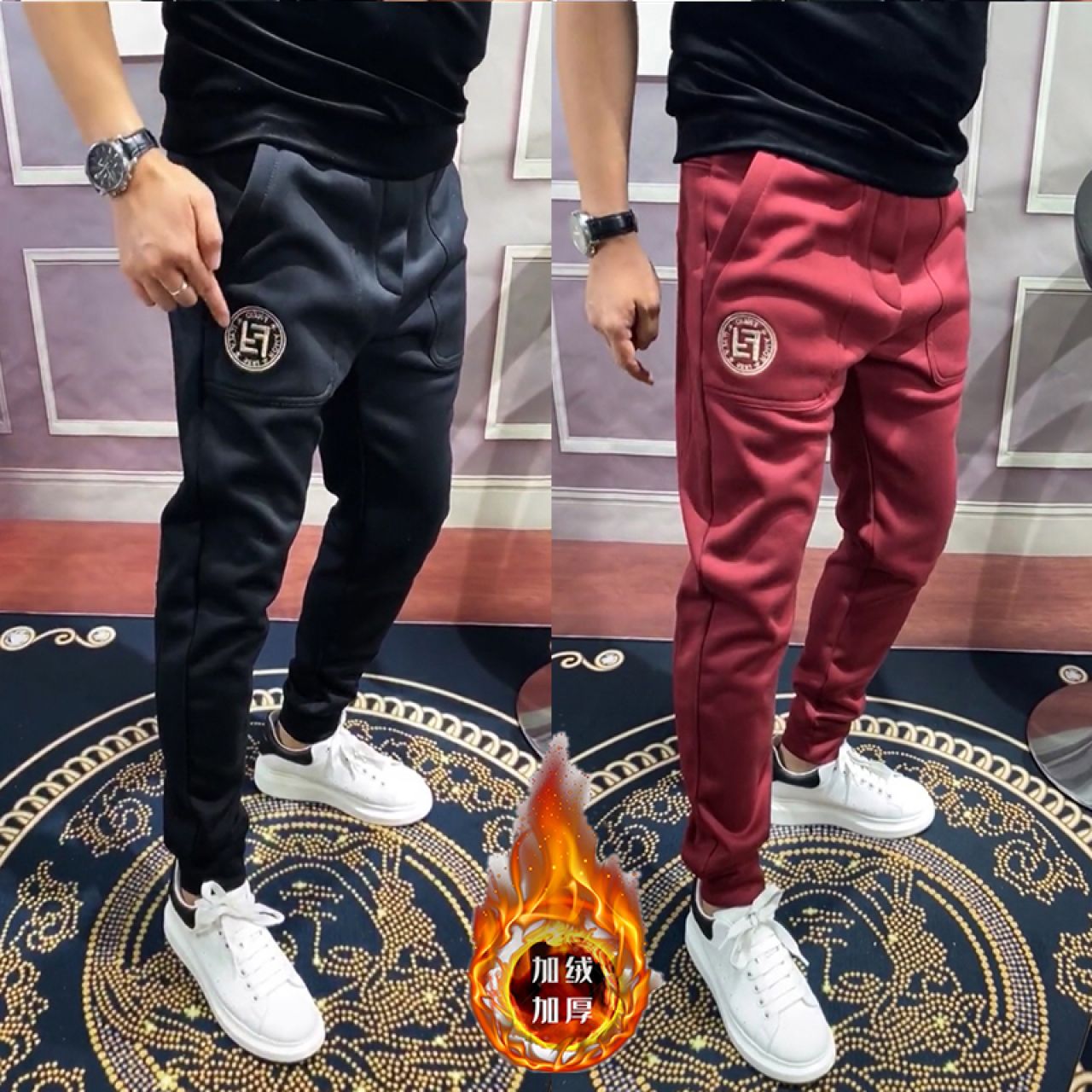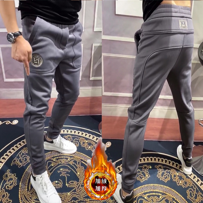 保暖加绒长裤子男士休闲裤秋冬季新加厚款带绒外穿加棉裤运动卫裤