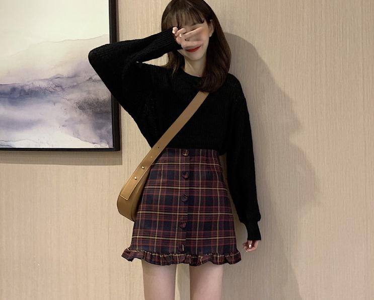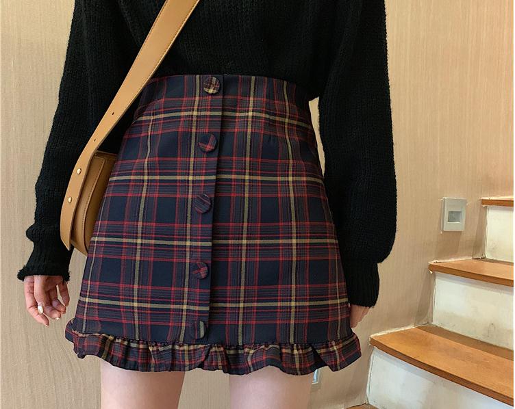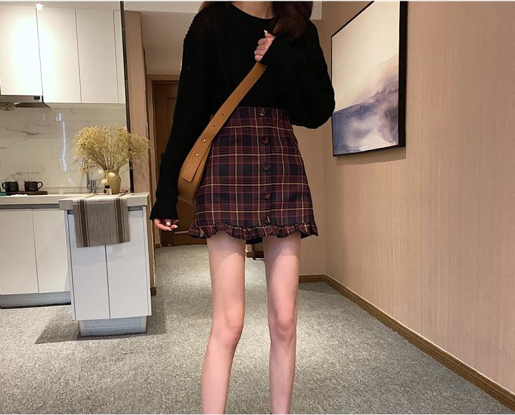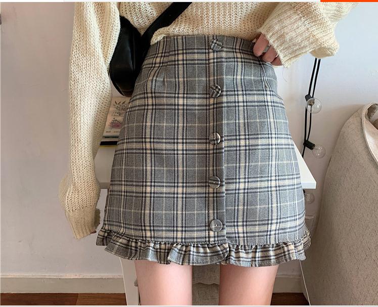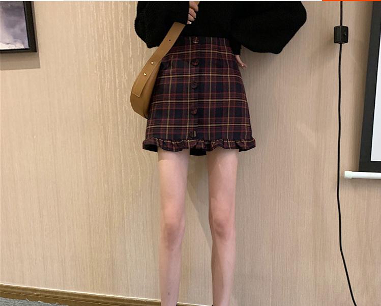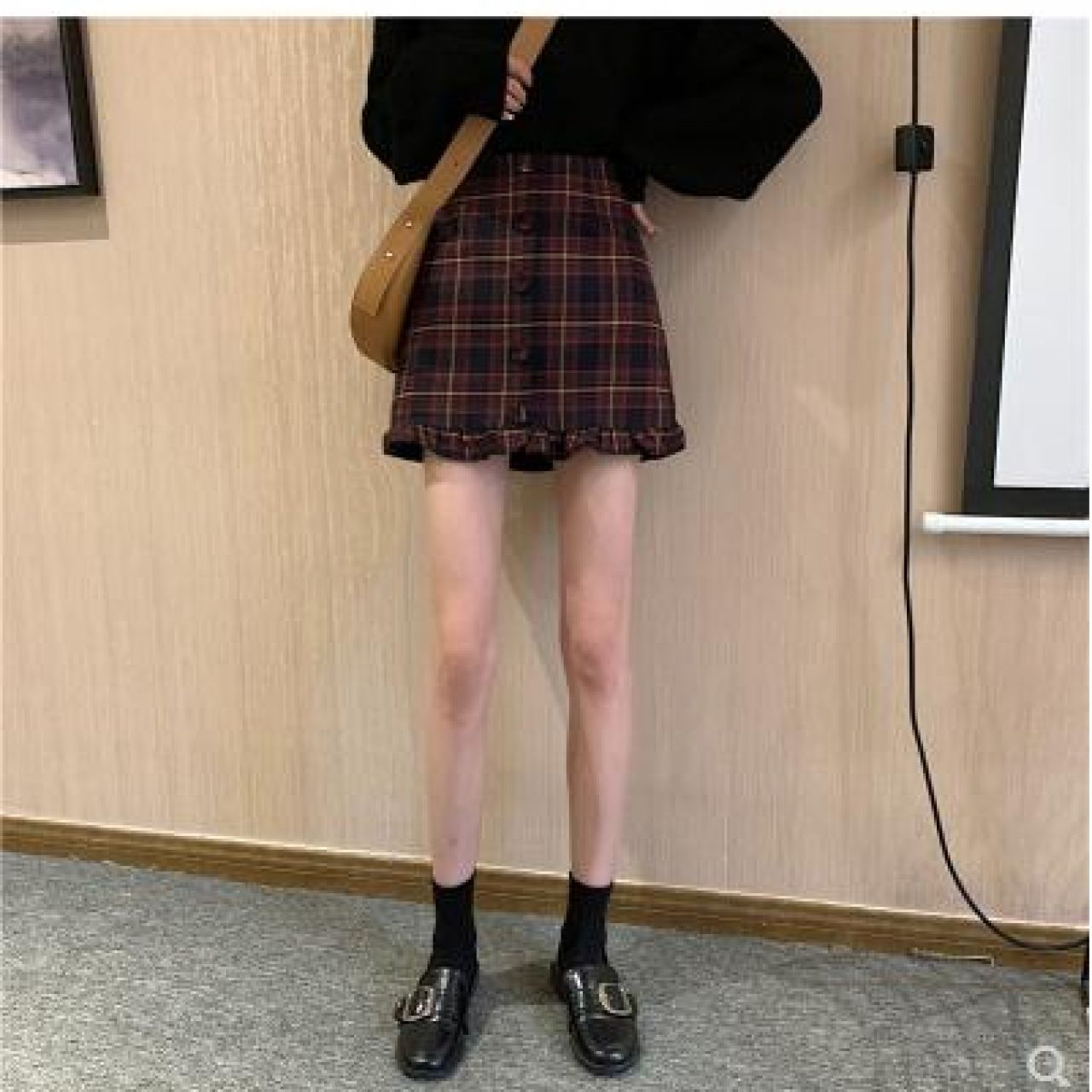 复古a字裙显瘦高腰格子半身裙秋冬女加厚学生气质性感包臀短裙子