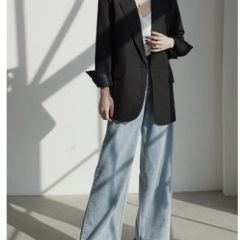 黑色西装外套女秋冬加厚韩版英伦风学生短款小个子设计感小众西服