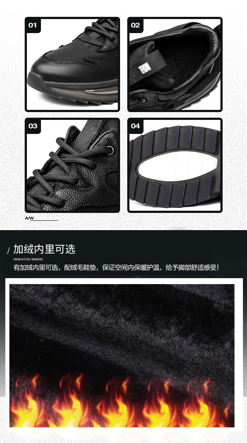 法马尼男鞋2020新款冬季加绒休闲皮鞋男真皮运动百搭棉鞋子男潮鞋