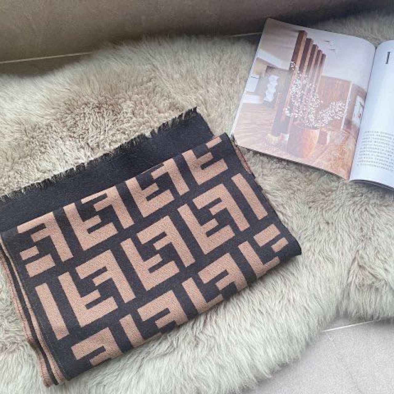 韩版F字母仿羊绒围巾双面保暖披肩百搭加厚网红同款