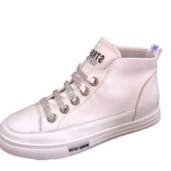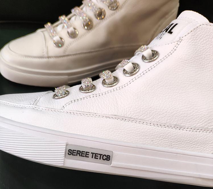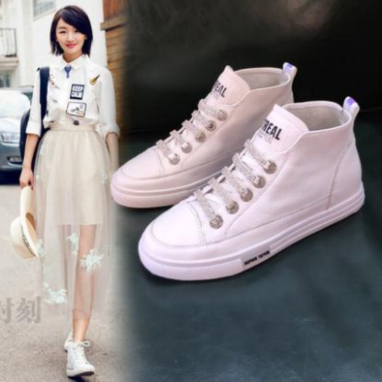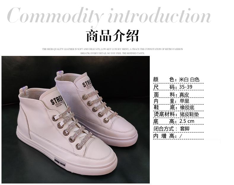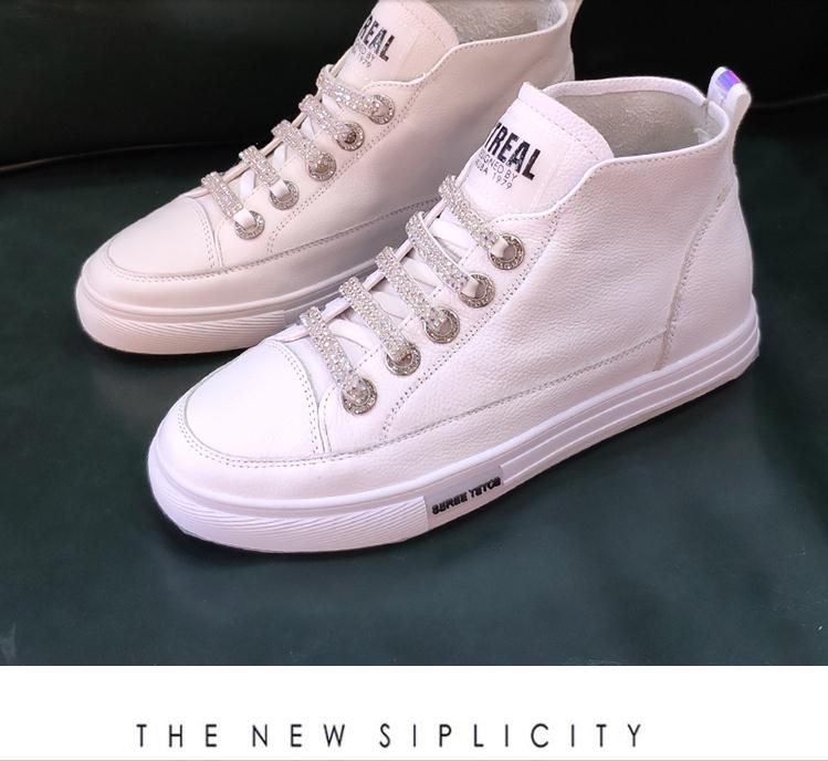 真皮全软皮面高帮套脚水钻高帮小白鞋女2020秋冬休闲韩版百搭板鞋