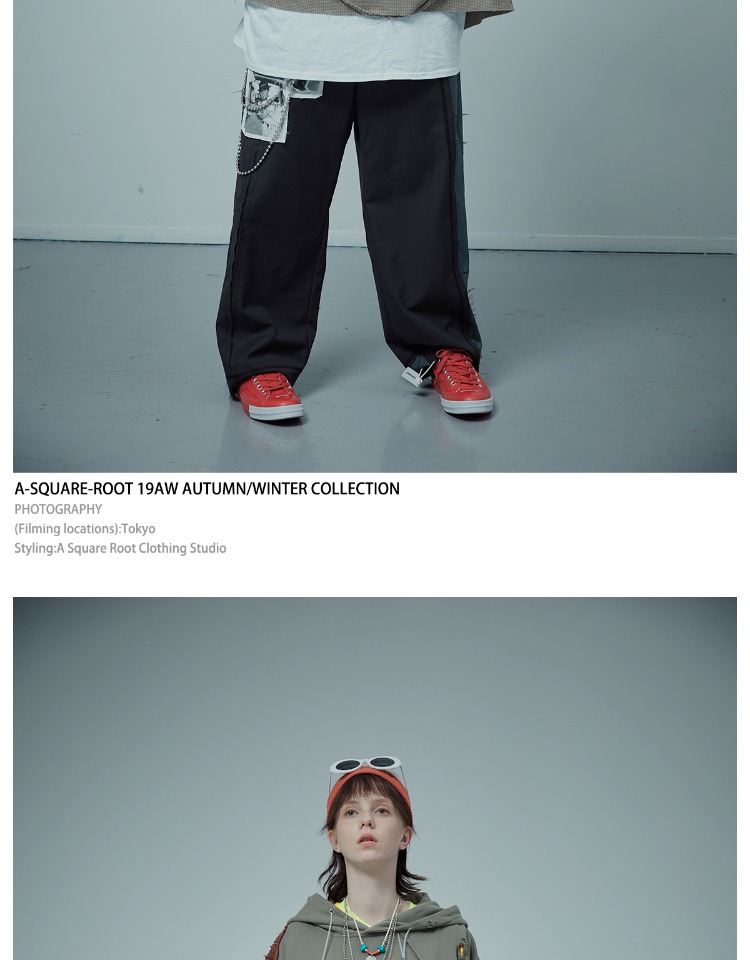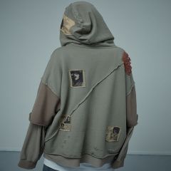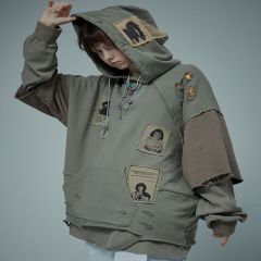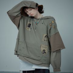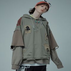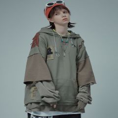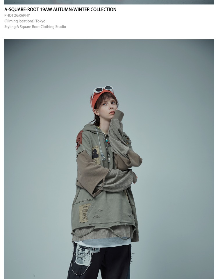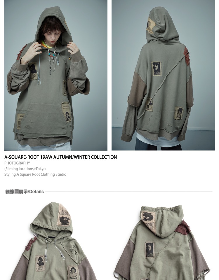 A SQUARE ROOT 华夫格袖拼接假两件复古贴布破坏毛圈厚款男女卫衣