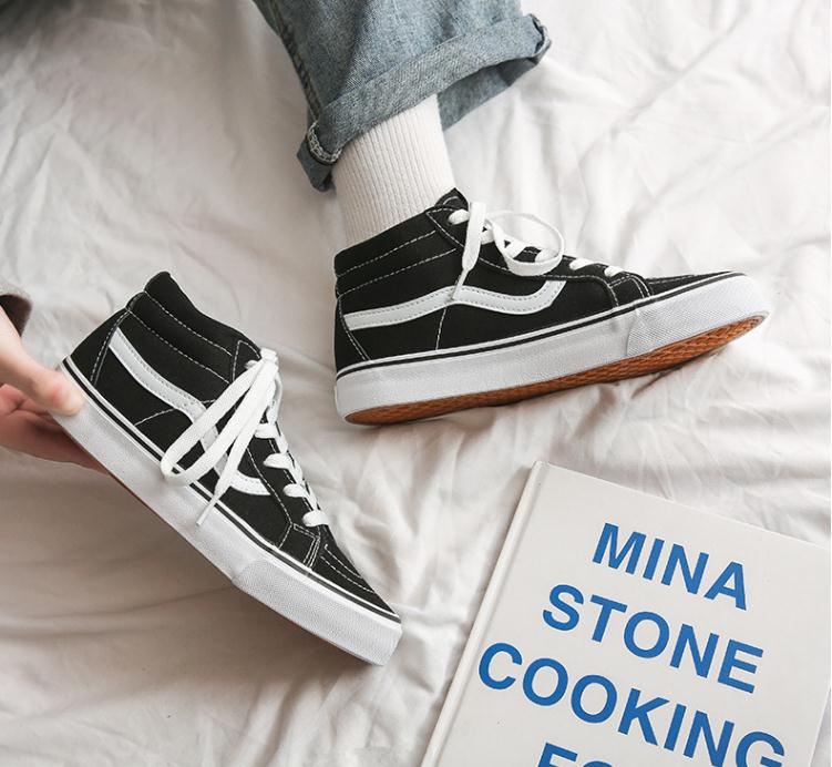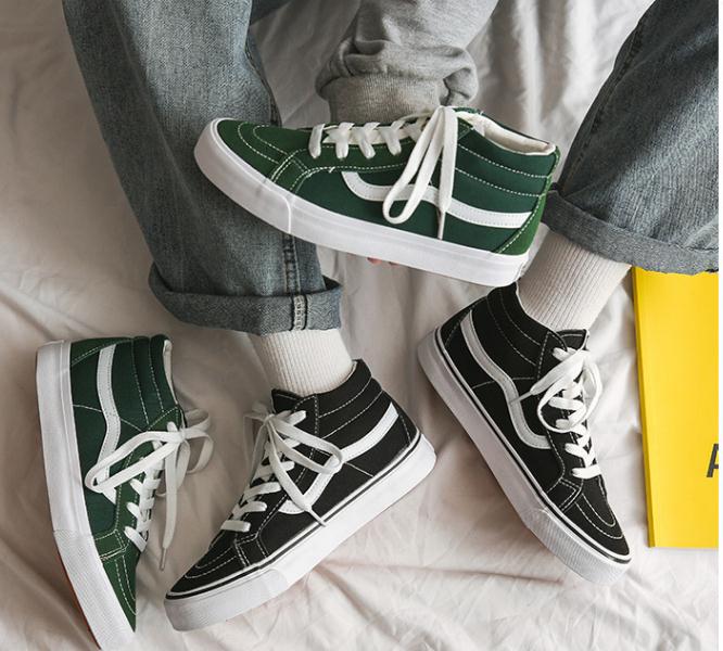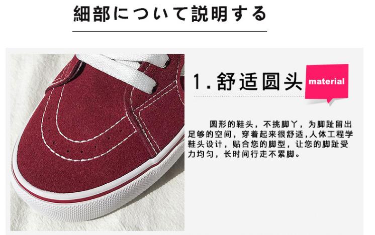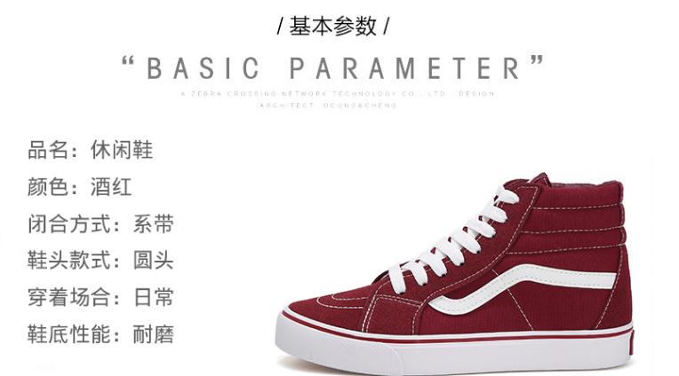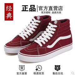 官网万斯巴wanshi帆布鞋男经典高帮酒红色百搭学生中帮板鞋子女潮