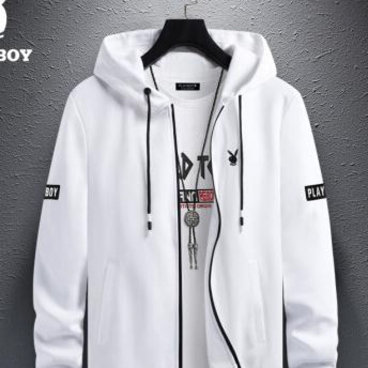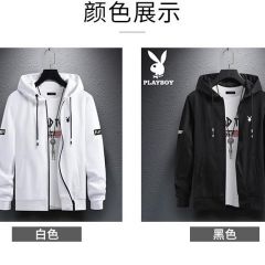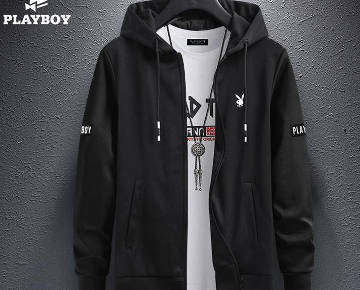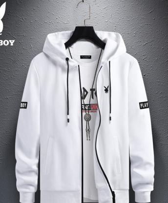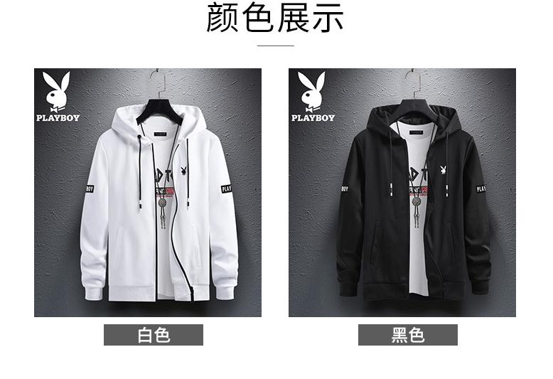 花花公子开衫卫衣男连帽潮春秋白色外套2020秋季新款男士秋装上衣
