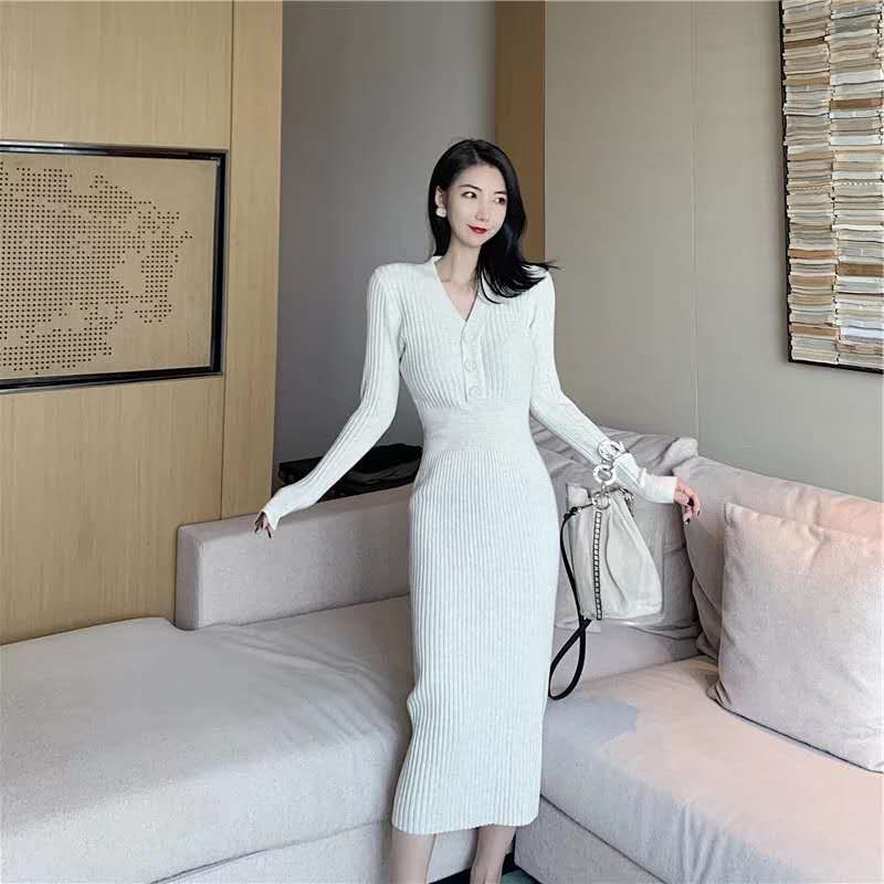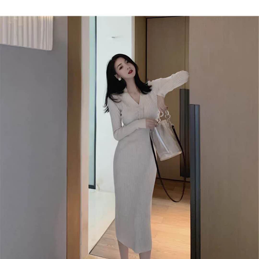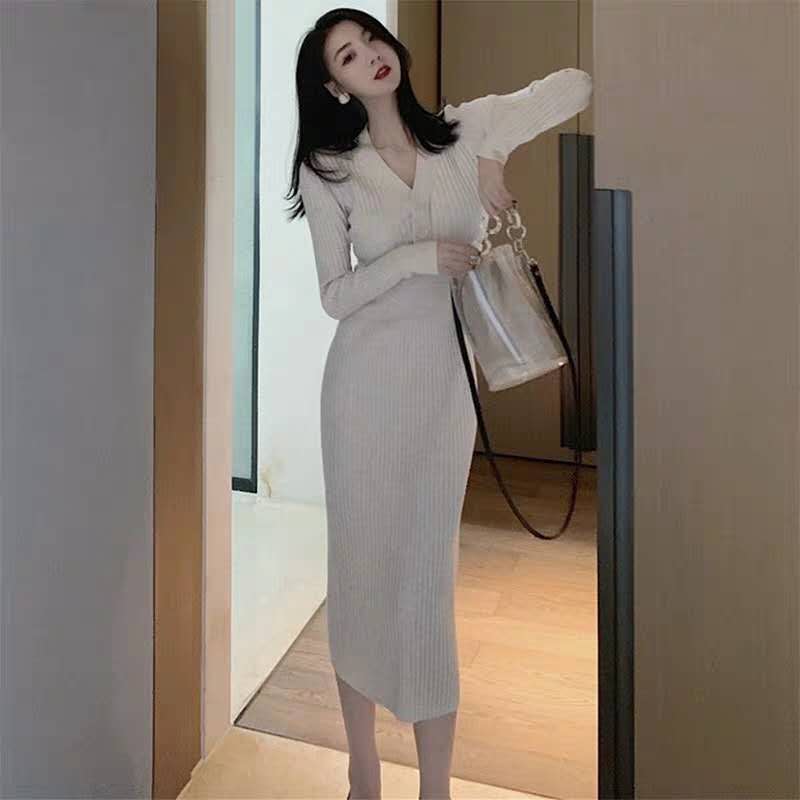 长款毛衣裙轻熟御姐名媛气质2020年新款打底针织连衣裙女秋冬内搭