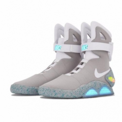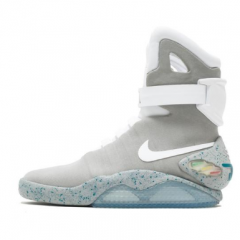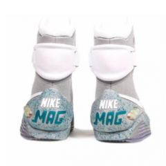 Nike Air Mag最初来自1989年,斯皮尔伯格监制的Back To The Future II(回到未来2),主角马丁来到了未来的2015年10月21日,就穿了一双Nike Air Mag,除了炫酷的外表,还能自动系鞋带,感测脚型。Nike经过了20年的科技研究,终于在2011年和2016年发售了Nike Air Mag,因为发售数量极少,Nike Air Mag的市场价格早已破万,最贵的交易价格甚至达到了70万。Nike Air Mag在原有基础上进行创新,突破了剧中的设计局限,在23年之后融入添加了时尚潮流元素,带来了新鲜感,在此前所实现的闪灯基础上,正式加入了Power Laces自动系带功能,鞋底也搭载着炫酷的跑马灯。因为发售数量极少,Nike Air Mag的市场价格早已破万,最贵的交易价格甚至达到了70万,是球鞋中前无古人后无来者的存在。