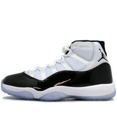 Air Jordan 11 Concord所属的AJ11系列基本都是采用的网布和漆皮的组合来打造鞋面,舒适的同时又富有质感.而在年底复刻的AJ11 Concord不仅采用的是非常稀有的45号字样,鞋面的漆皮面积也变大了,还加上反转飞人logo的设计,与2016年发售的AJ11 大灌篮十分近似。