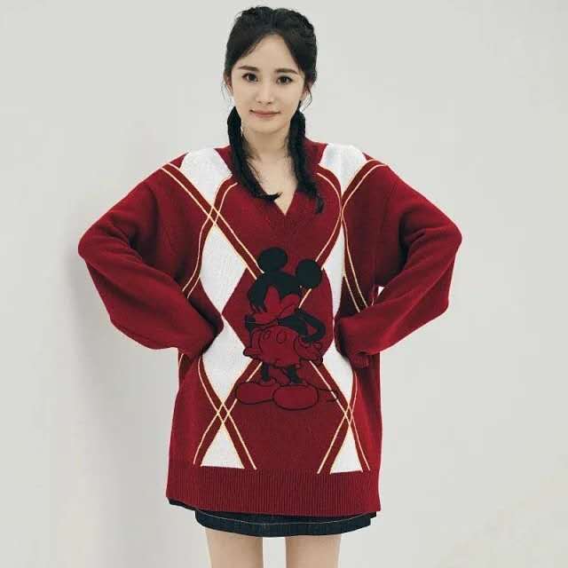 欧阿玛施旗正品2020秋冬新款杨幂明星同款羊毛V领宽松毛衣针织衫
