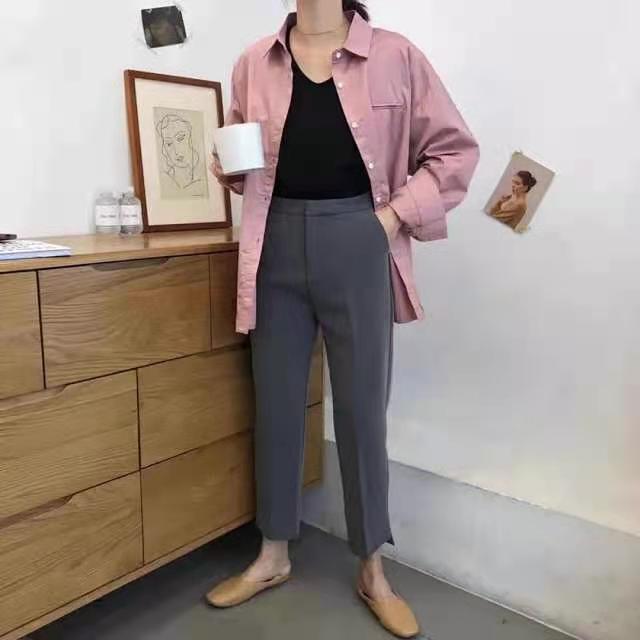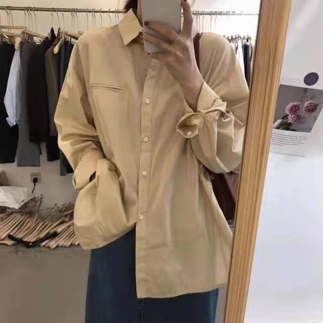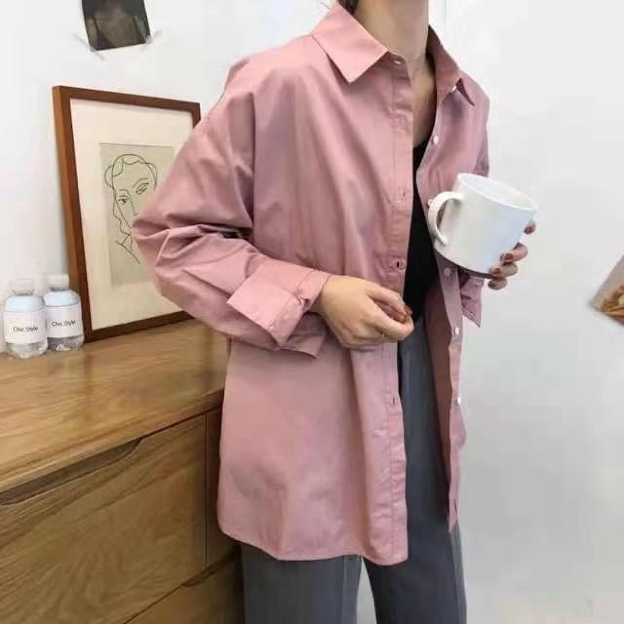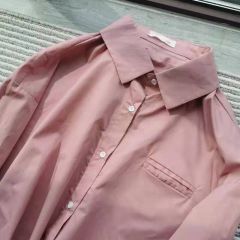 粉色长袖衬衫外套女宽松韩版外穿2020新款春秋季复古港味百搭上衣