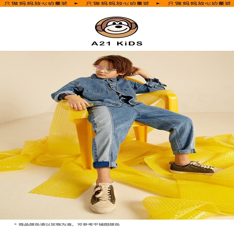 A21童装中大男童潮牛仔长裤2020秋季新款弹力纯棉多口袋工装裤子