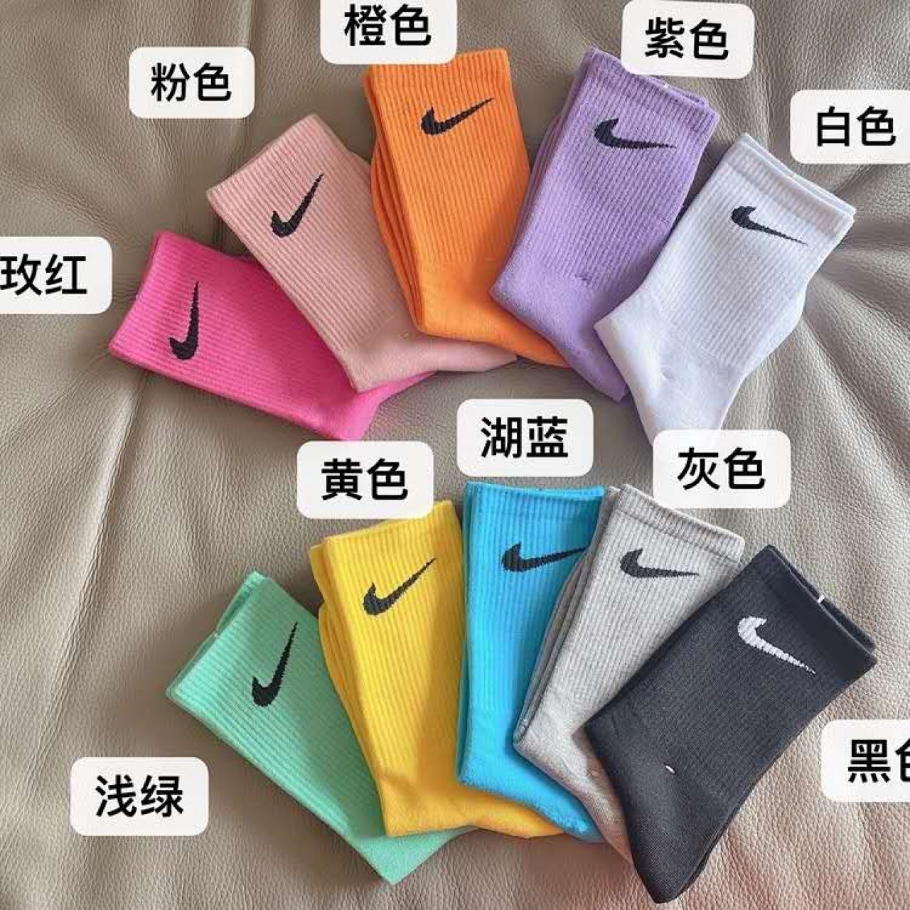 Nike耐克袜子女韩版长筒男女吸汗透气运动ins潮袜子中筒彩色
