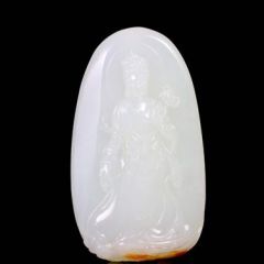 玉秀新疆和田玉籽料玉龙观音男款神兽莲花观音苏工正品雕刻带证书
