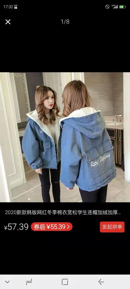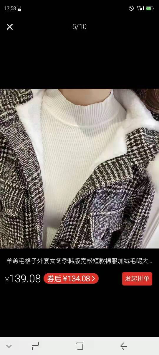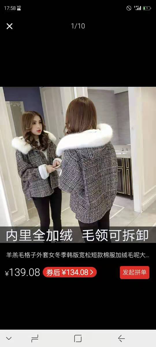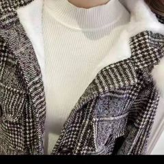 羊羔毛格子外套女冬季韩版宽松短款棉服加绒毛呢大衣ins反季清仓