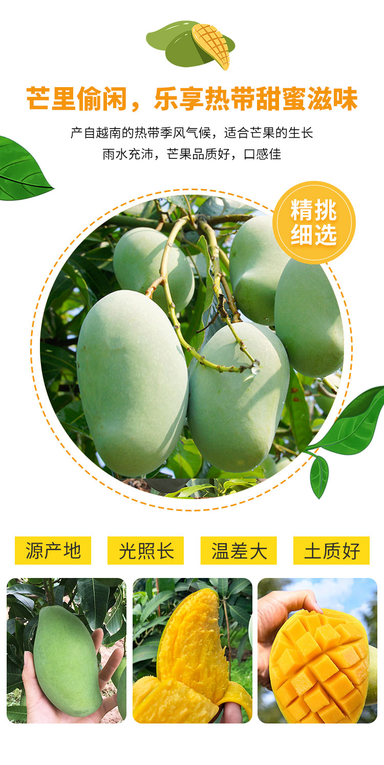 越南大青芒果玉芒新鲜水果应季当季青皮芒果整箱精选3/5斤包邮10