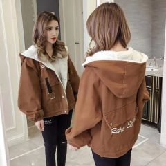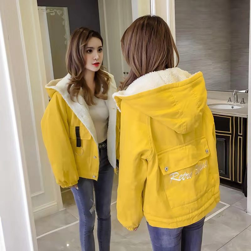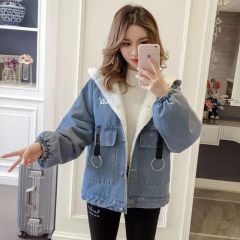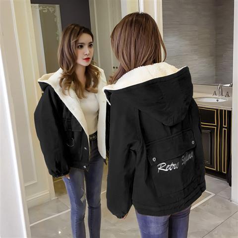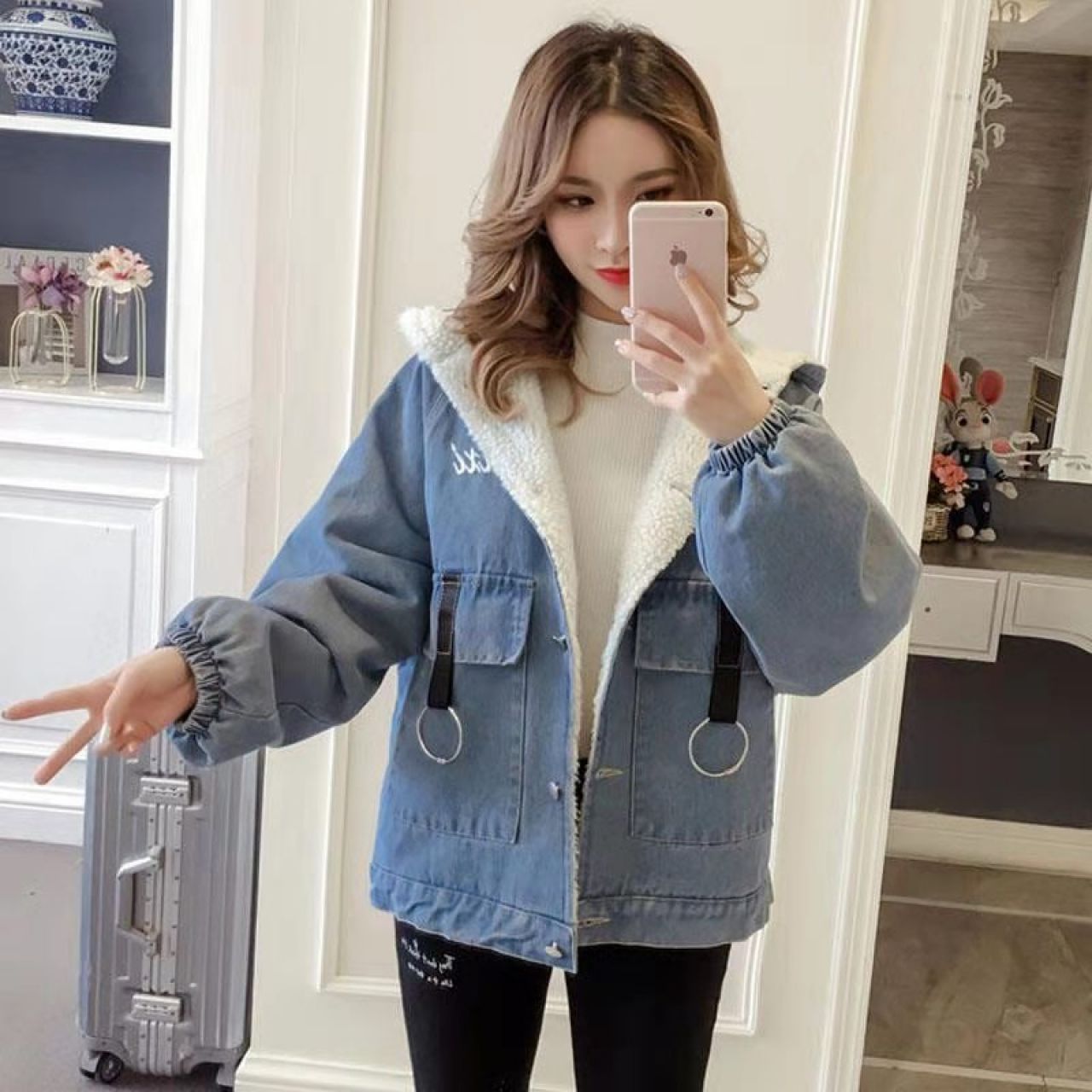2020新款韩版网红冬季棉衣宽松学生连帽加绒加厚羊羔毛牛仔外套女