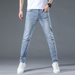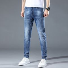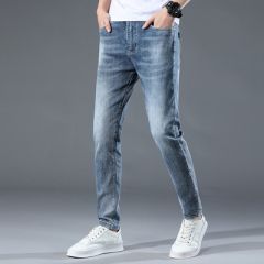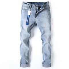 2020秋冬新款高端浅色牛仔裤男士潮牌修身小脚韩版潮流百搭长裤子