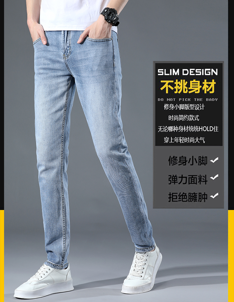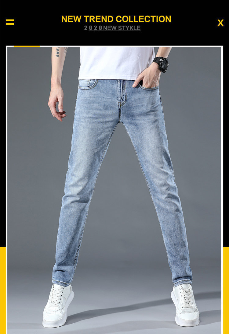 2020秋冬新款高端浅色牛仔裤男士潮牌修身小脚韩版潮流百搭长裤子 青春流行 浅蓝色 深蓝色 蓝色 黑色 浅蓝 28 29 30 31 32 33 34