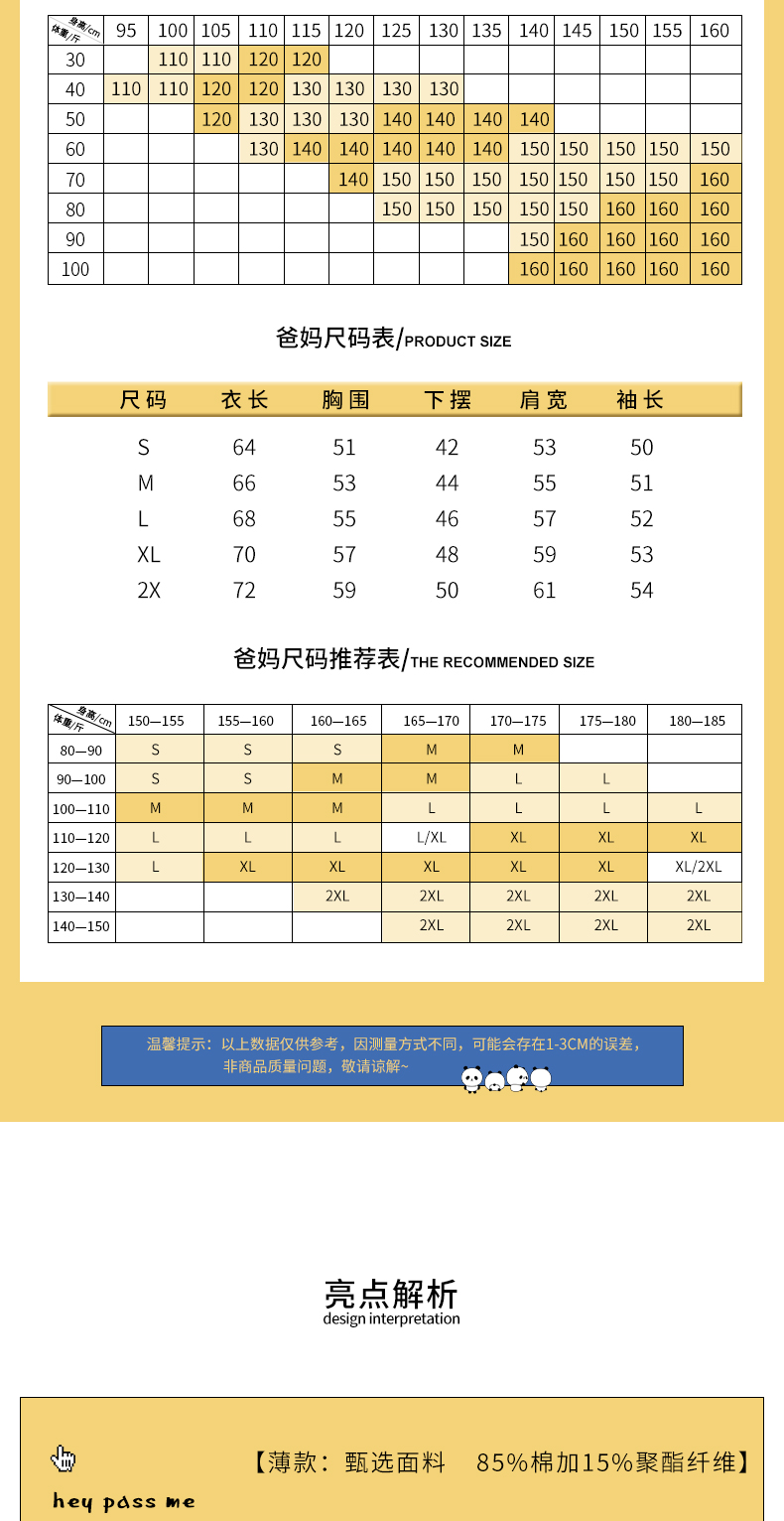 尺码: 110cm 120cm 130cm 140cm 150cm 160cm 爸爸S 爸爸M 爸爸L 爸爸XL 爸爸2X 妈妈S 妈妈M 妈妈L 妈妈XL 妈妈2X