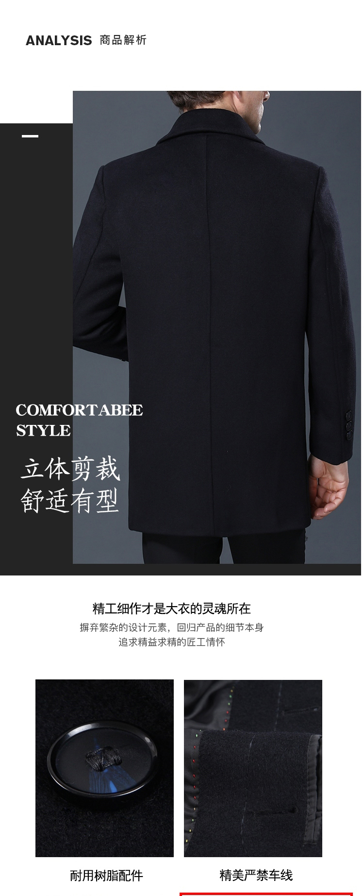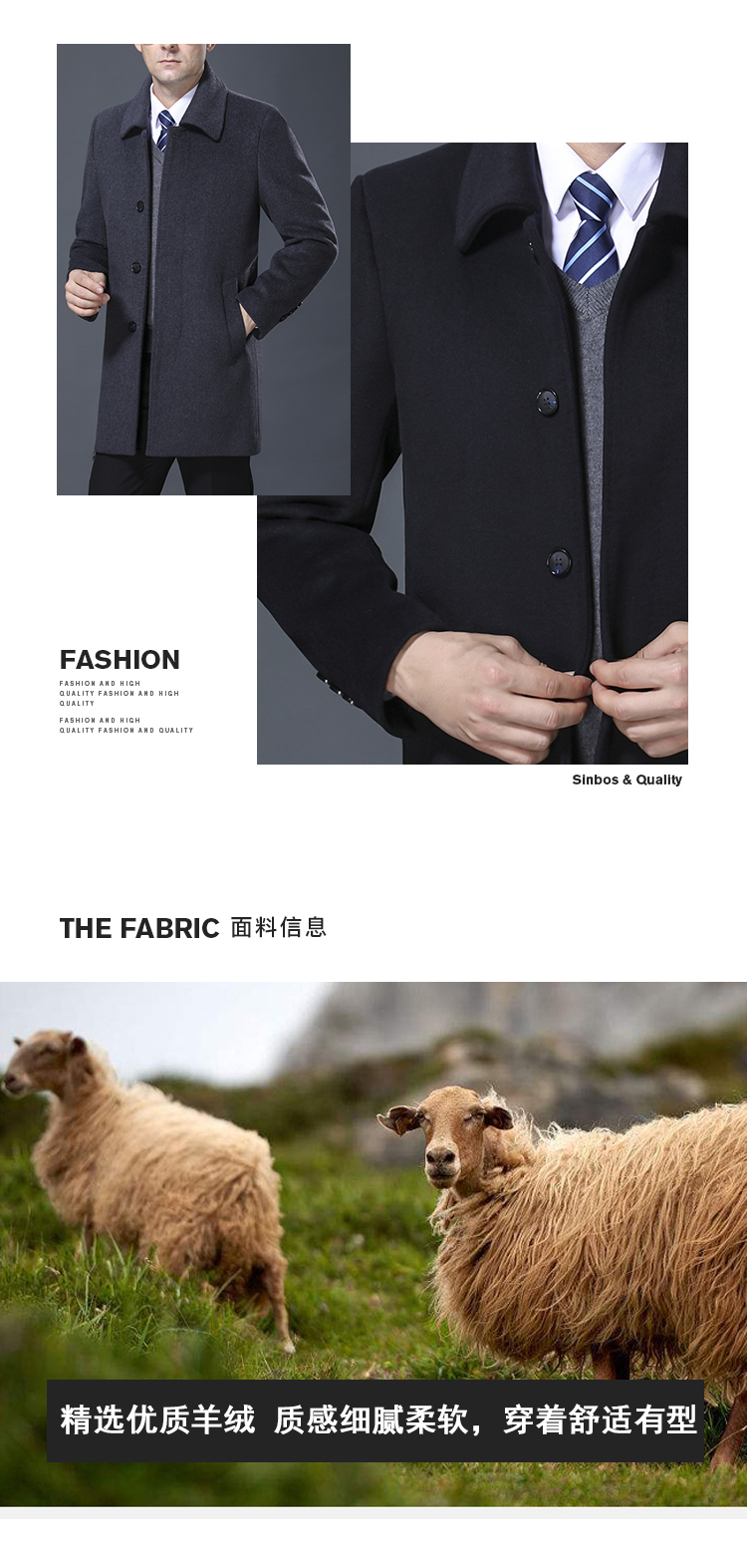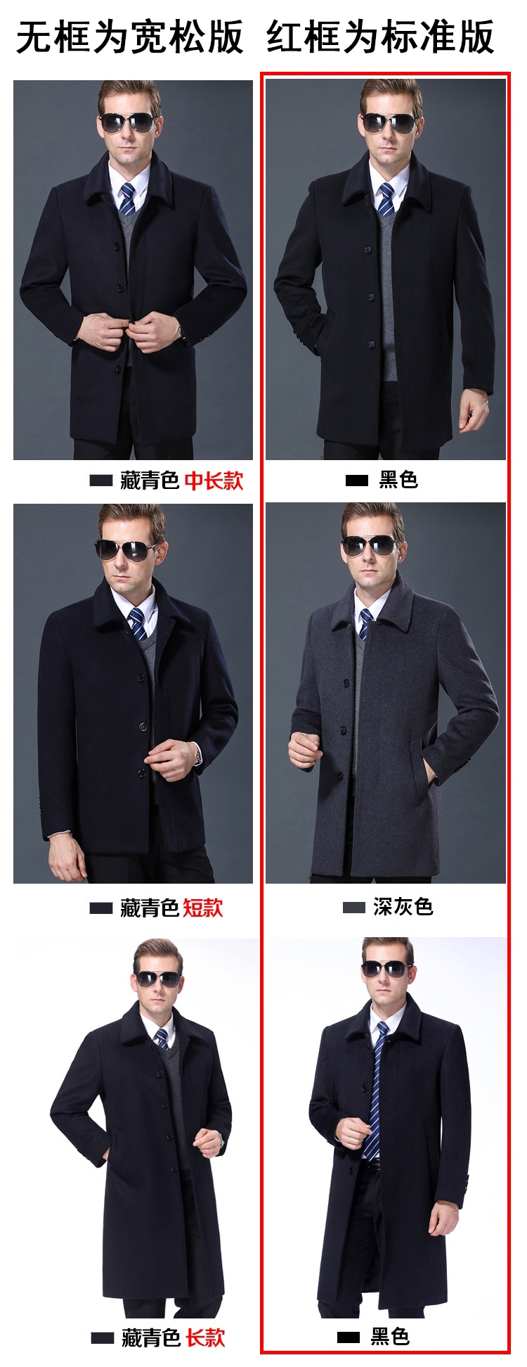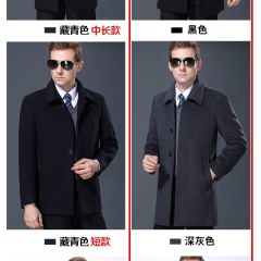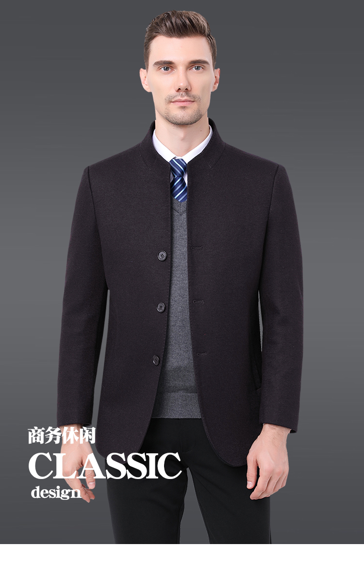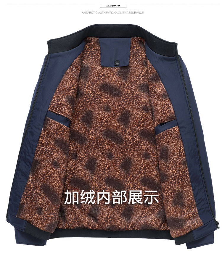 恒源祥夹克男中老年秋冬夹棉加厚呢子外套男爸爸装单排扣立领茄克