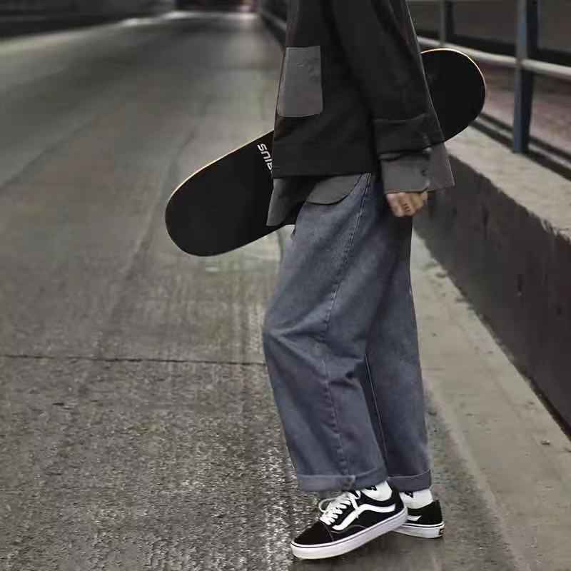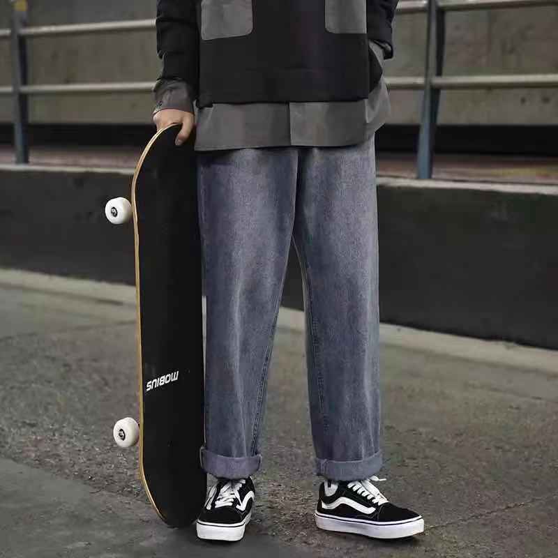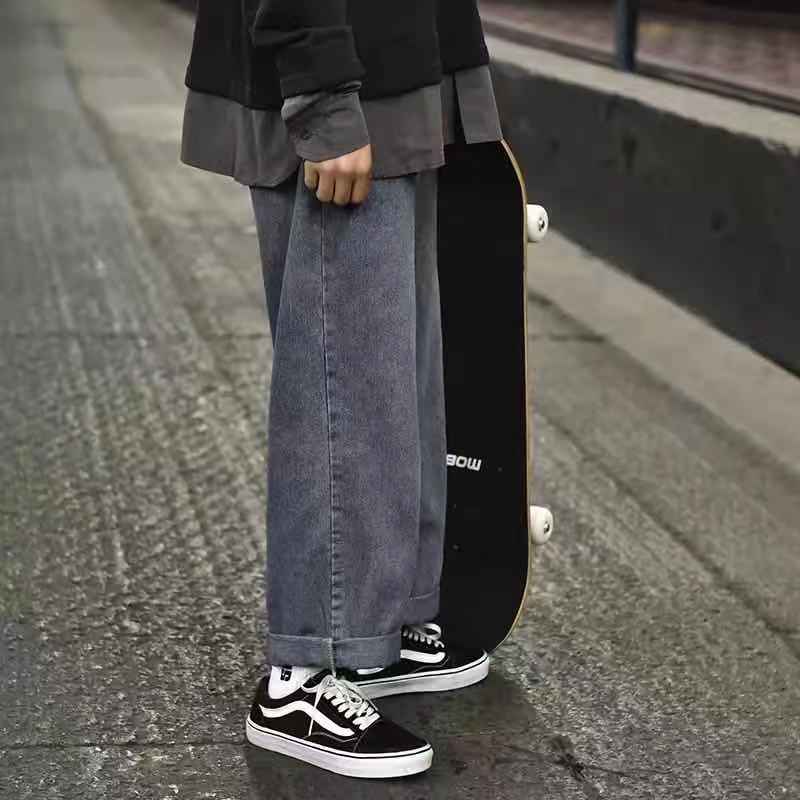 直筒牛仔长裤男坠感宽松阔腿裤ins潮牌复古加绒加厚潮流休闲裤子