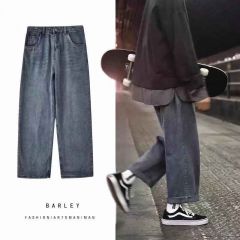 男牛仔裤,直筒牛仔长裤男坠感宽松阔腿裤ins潮牌复古加绒加厚潮流休闲裤子
