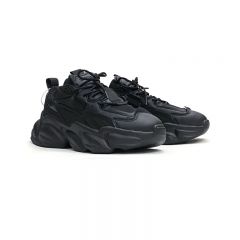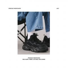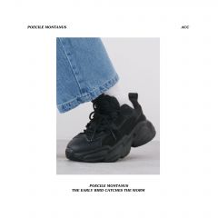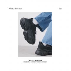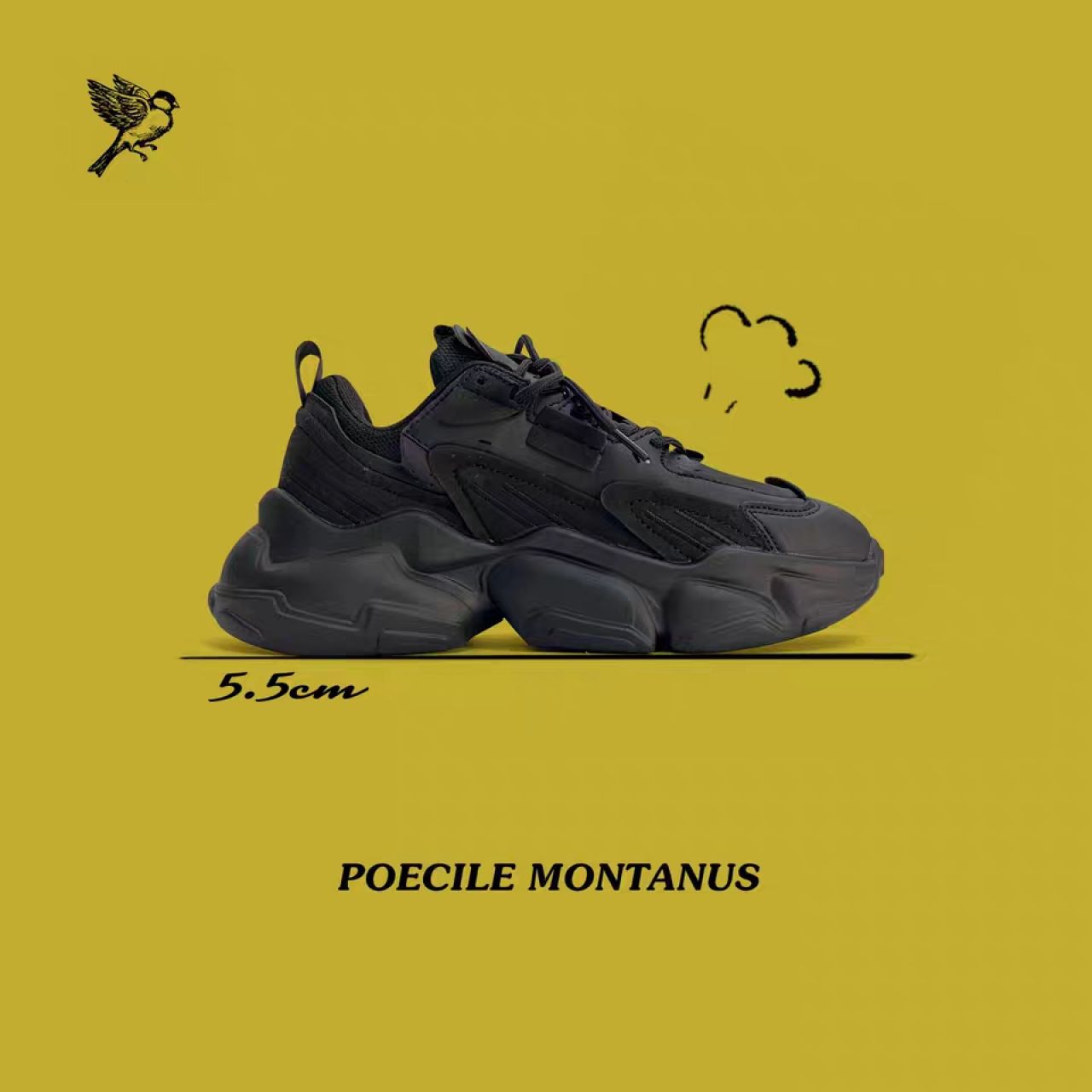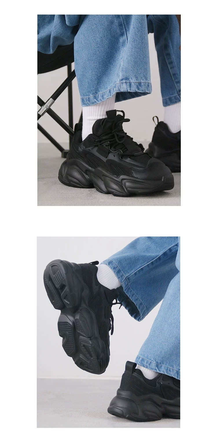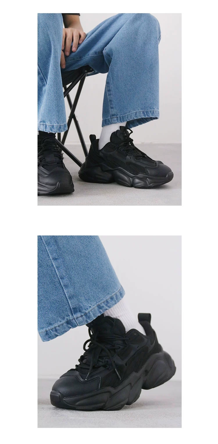 【褐头山雀】 黑武士厚底增高炭黑复古机能风老爹鞋情侣男女 黑色