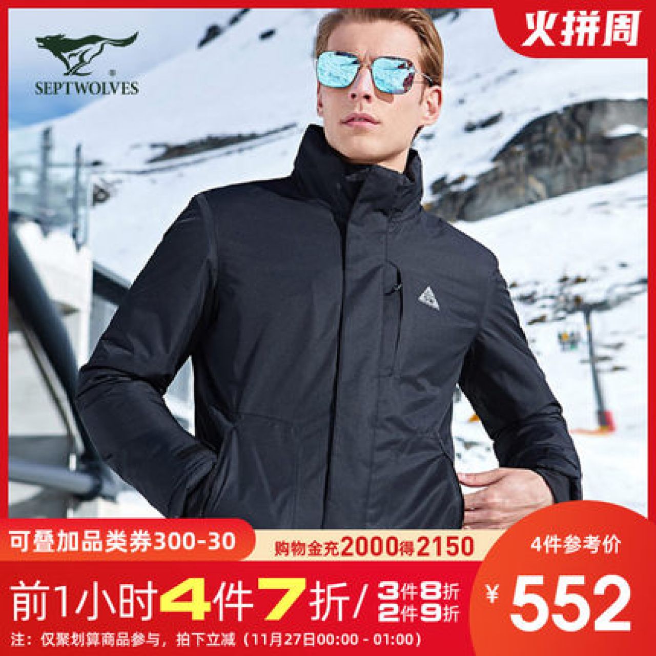 七匹狼男装新款运动户外保暖棉服夹克百搭时尚外套