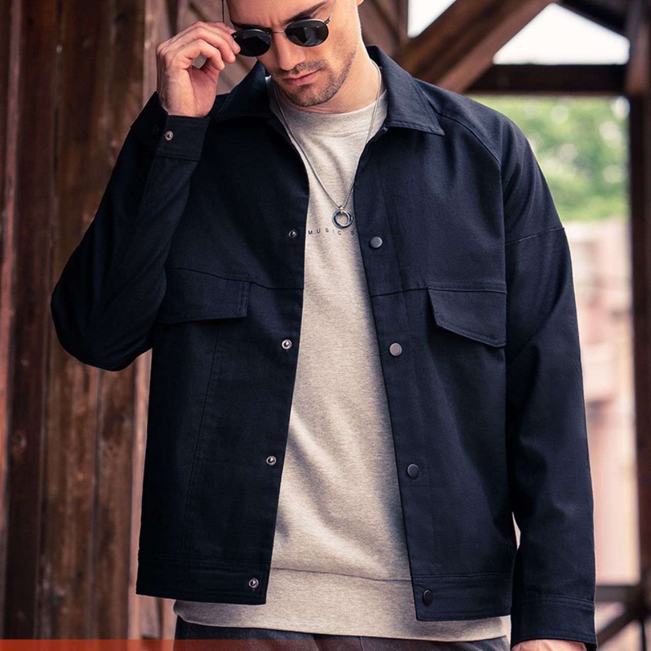 英爵伦 棉质秋季新款男士夹克 欧美简约秋冬翻领休闲纯色加绒外套
