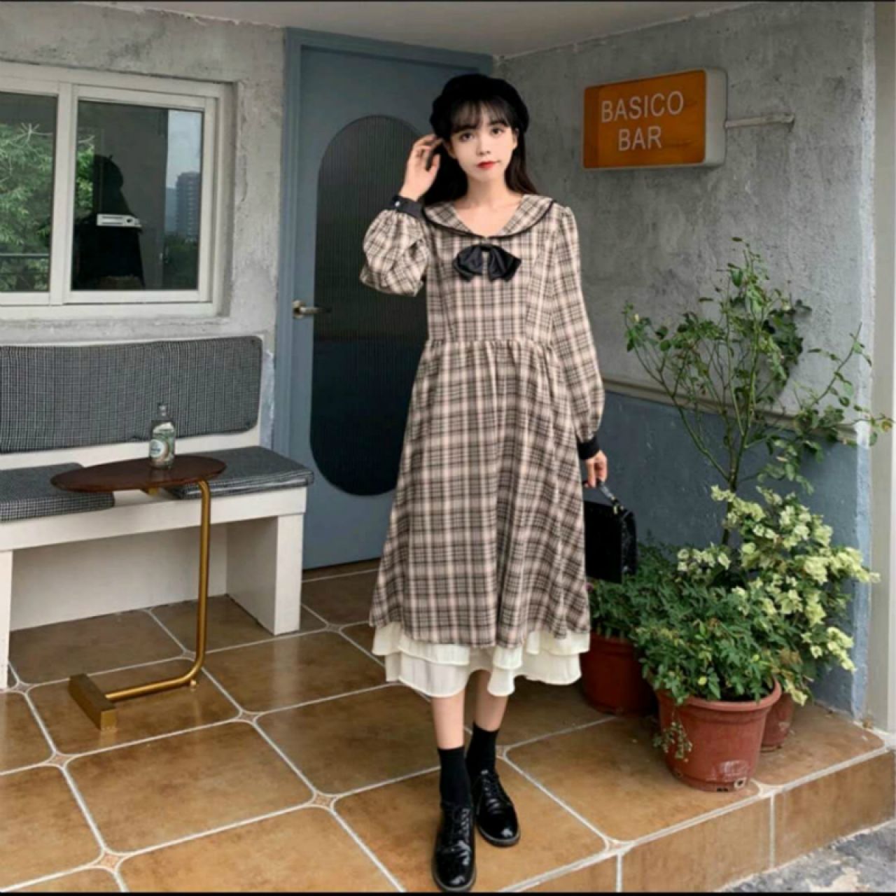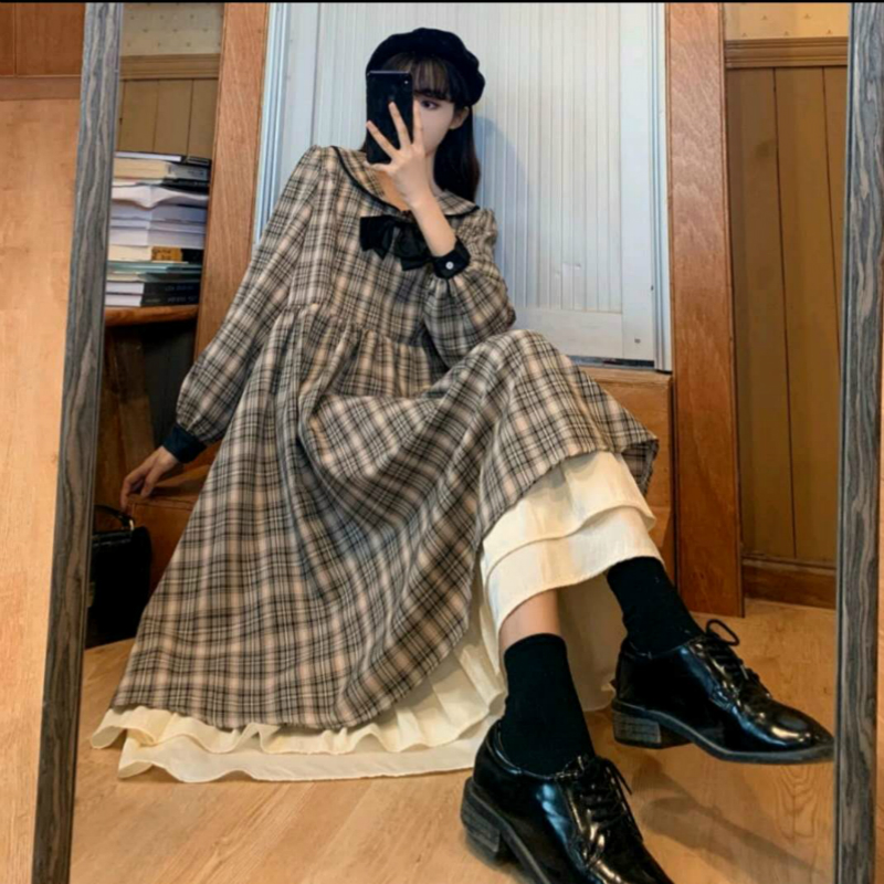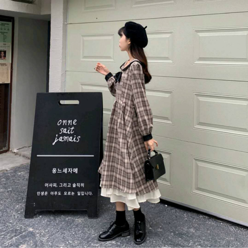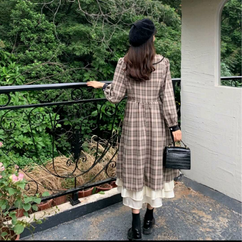 格子连衣裙