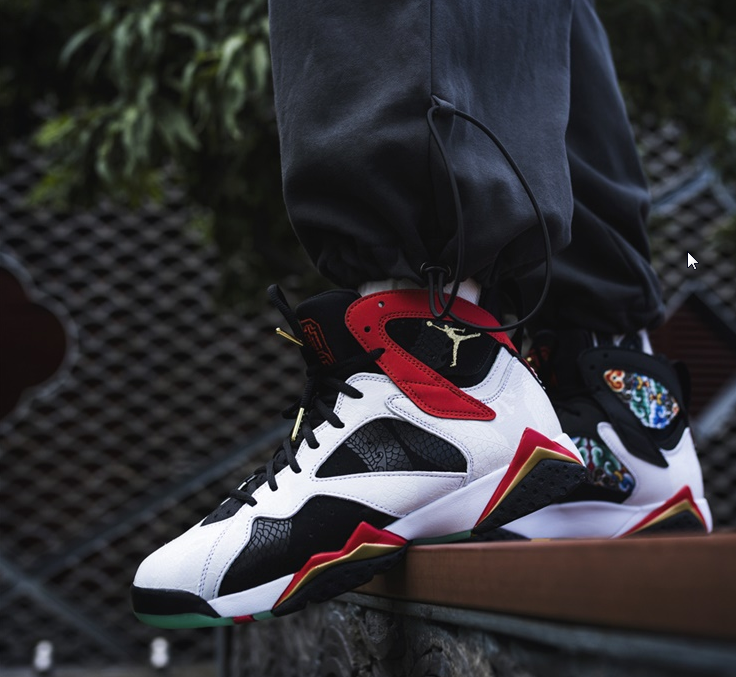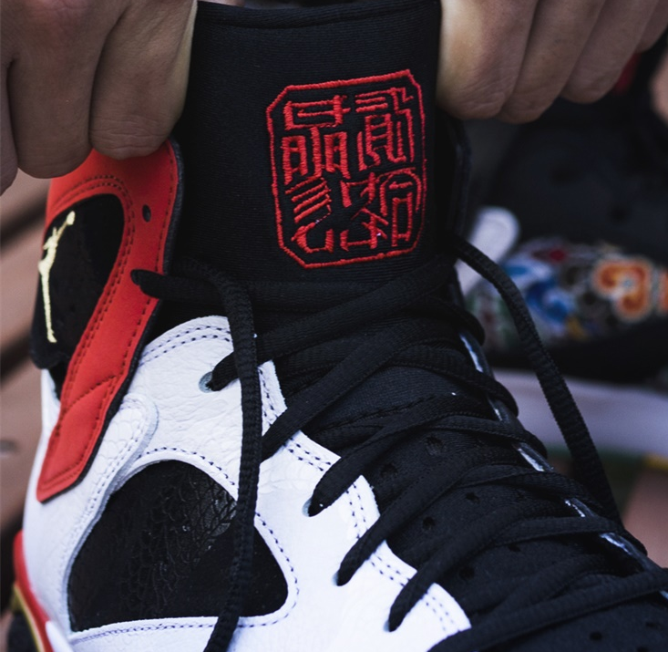 AJ7紫禁之巅整体采用鲜明的黑白红撞色勾勒鞋身轮廓,中底,鞋帮JUMPMAN LOGO等细节辅以素雅的金色点缀。以颇具中国韵味的黑白红金配色装饰,采用内外不对称的阴阳设计