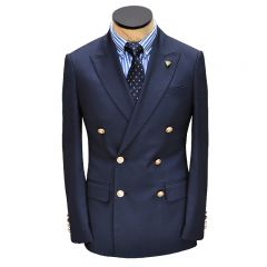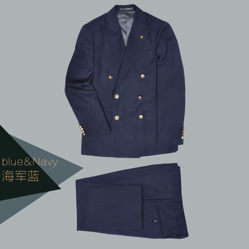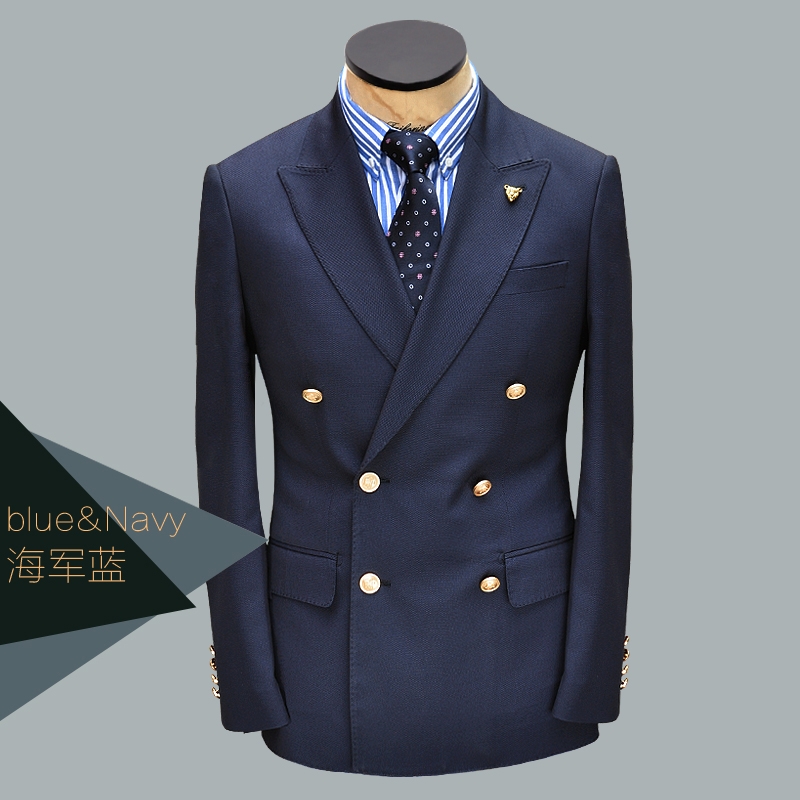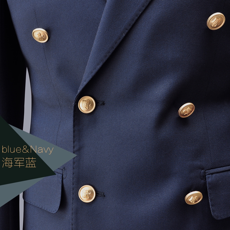 ZBTO原创男装重磅海军蓝Blazer布雷泽春夏修身双排扣金扣西装外套