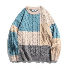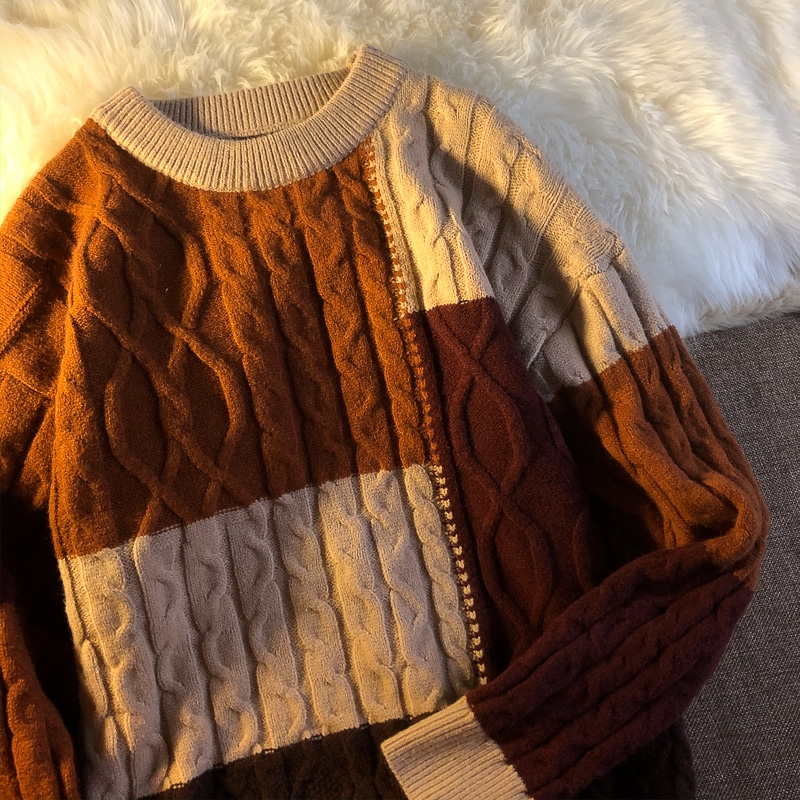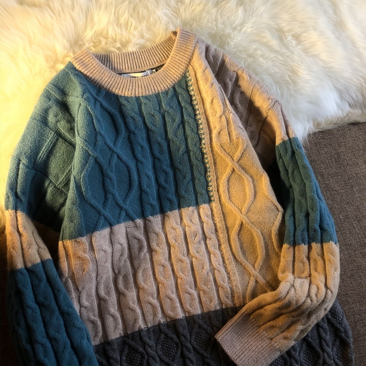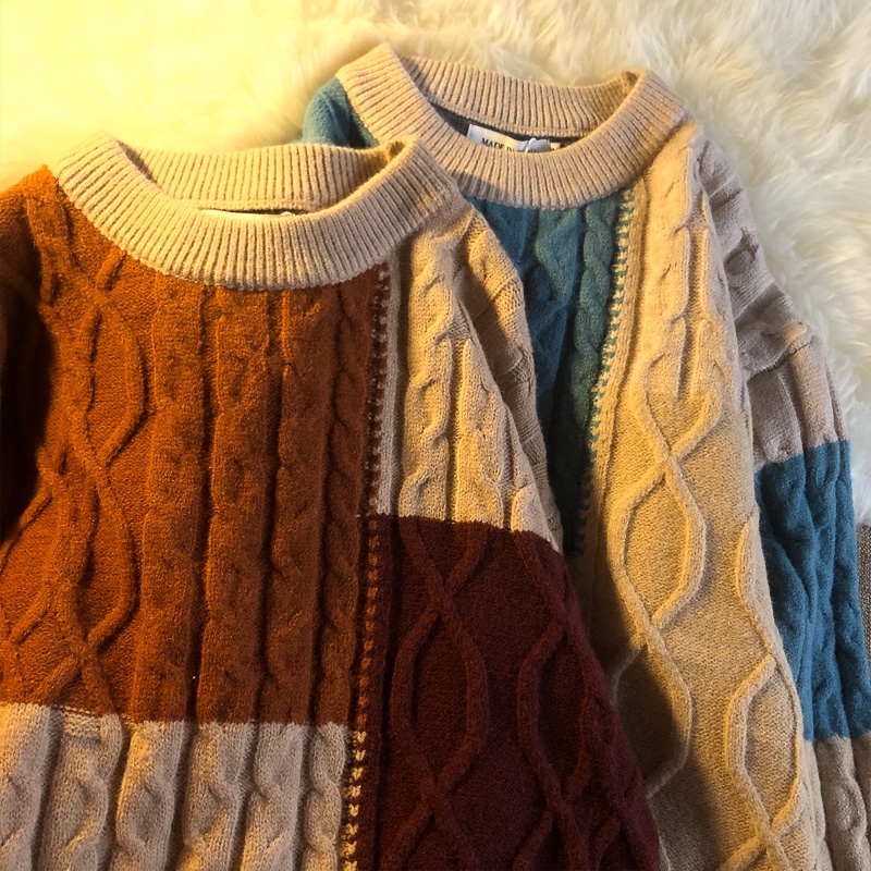 2020新款复古vintage麻花拼色毛衣潮ins秋冬外穿情侣装