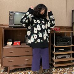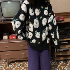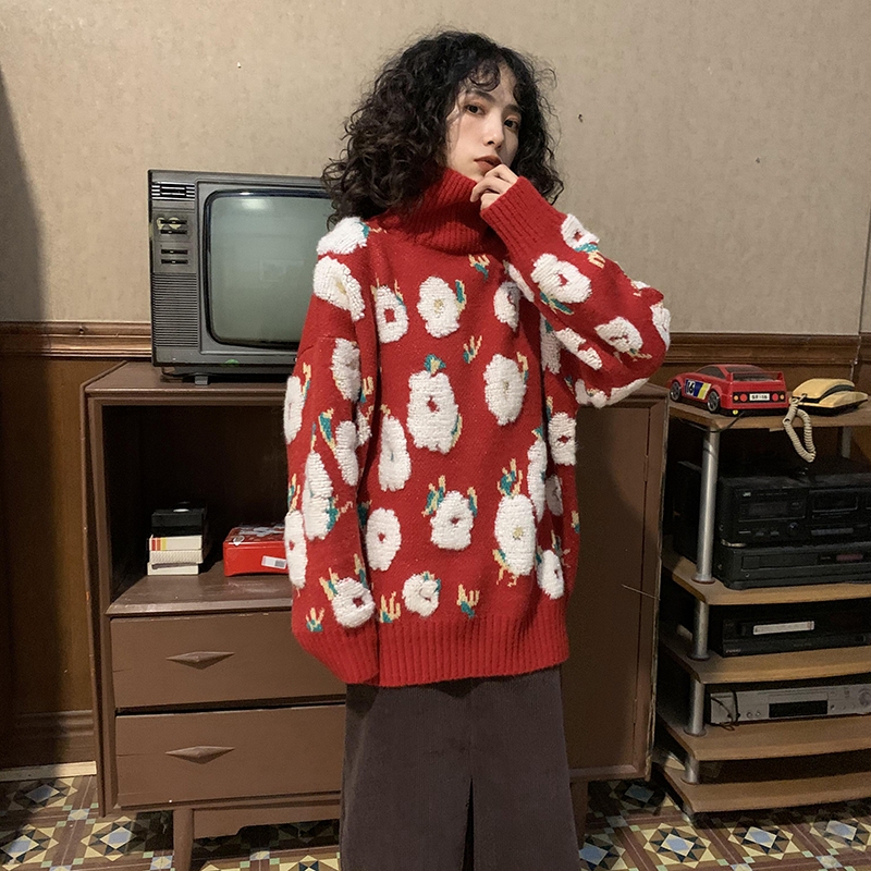 独行的棕鹿红色高领圣诞毛衣女2020年新款秋冬外穿宽松复古