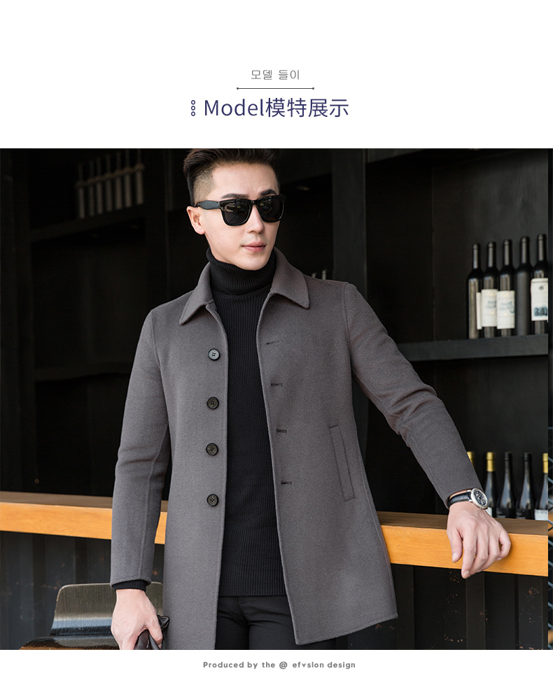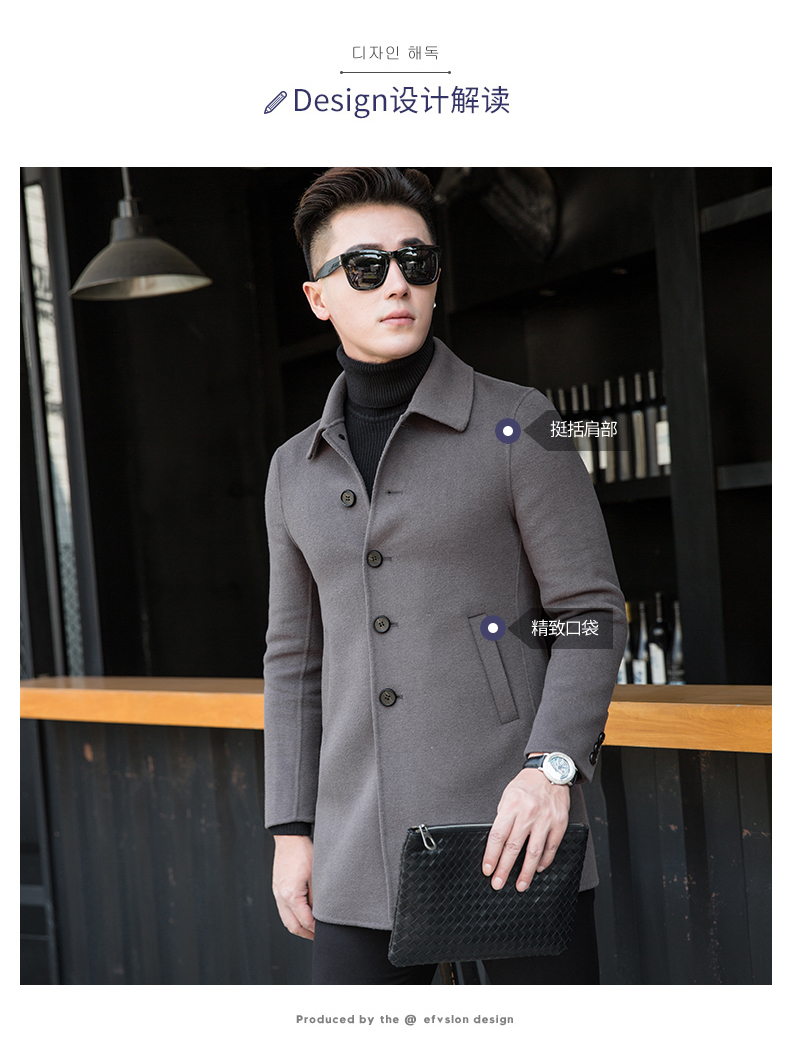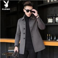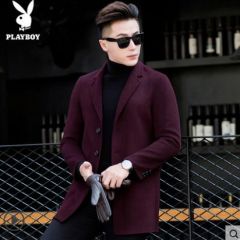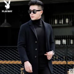 花花公子外套男秋季新款羊毛双面尼大衣男士休闲无羊绒呢子风衣潮