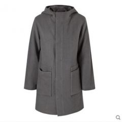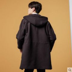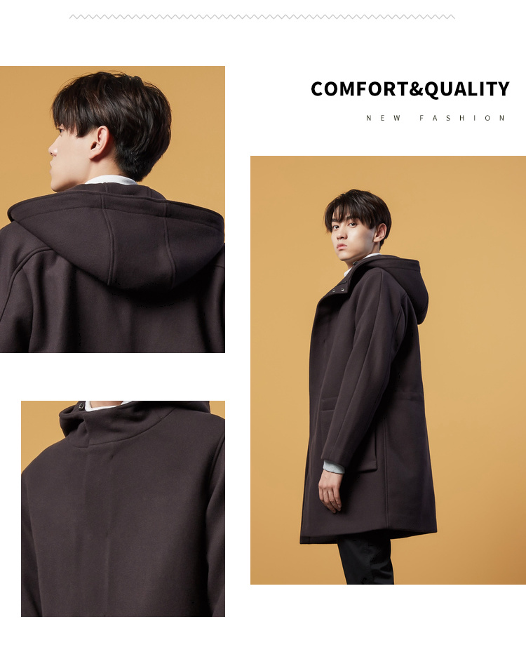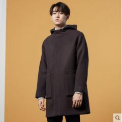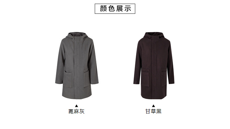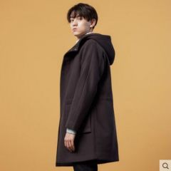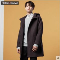 美特斯邦威毛呢大衣男潮中长款春秋新款休闲学生连帽男士呢子外套