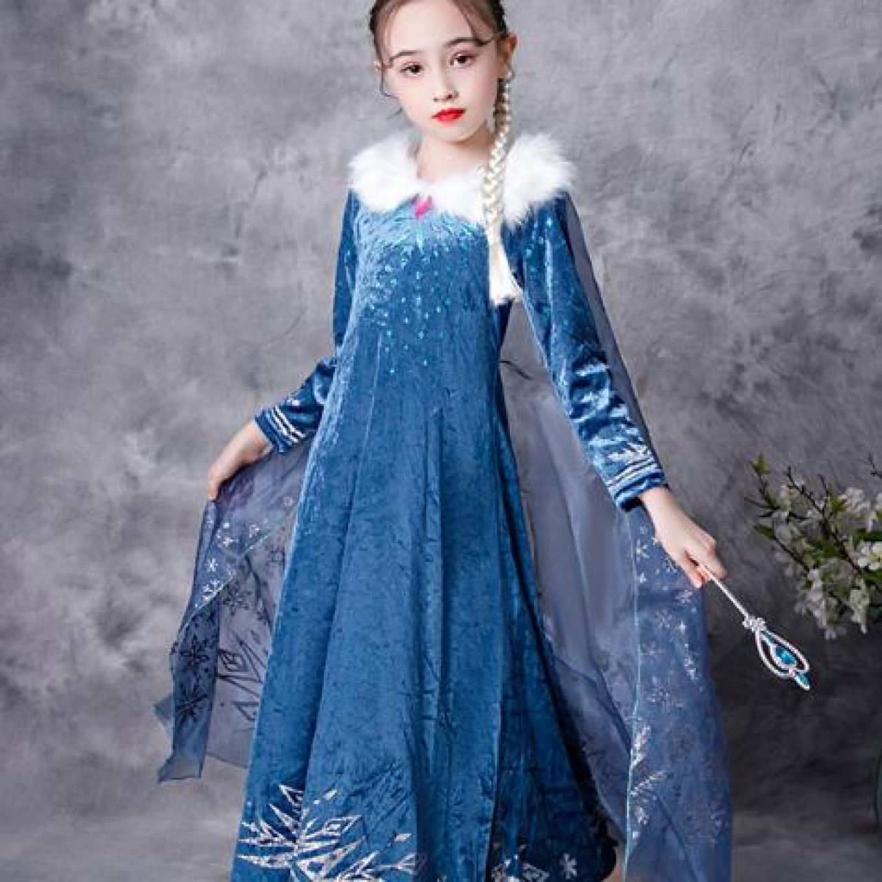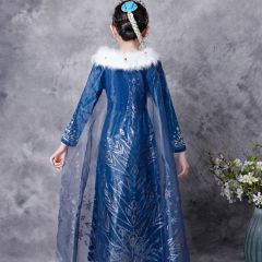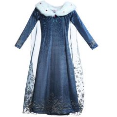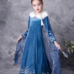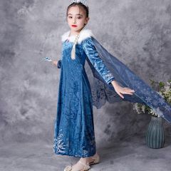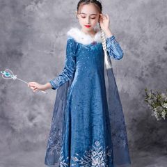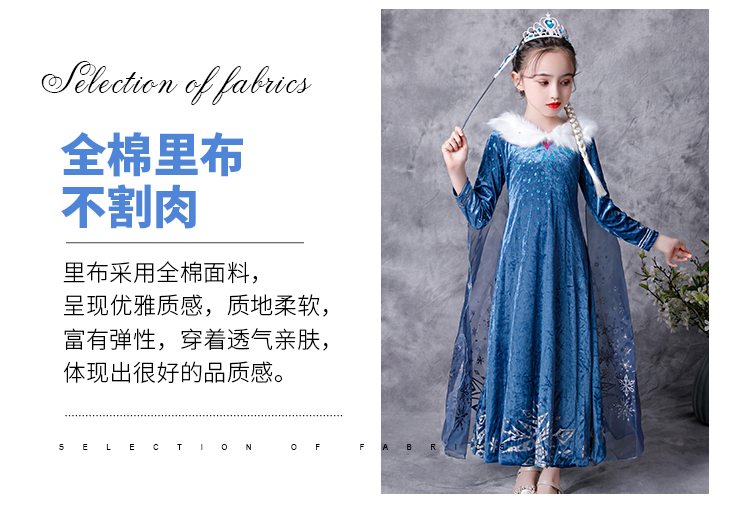 冰雪奇缘艾莎公主裙爱莎女童连衣裙儿童毛领长袖裙子秋冬长款童裙