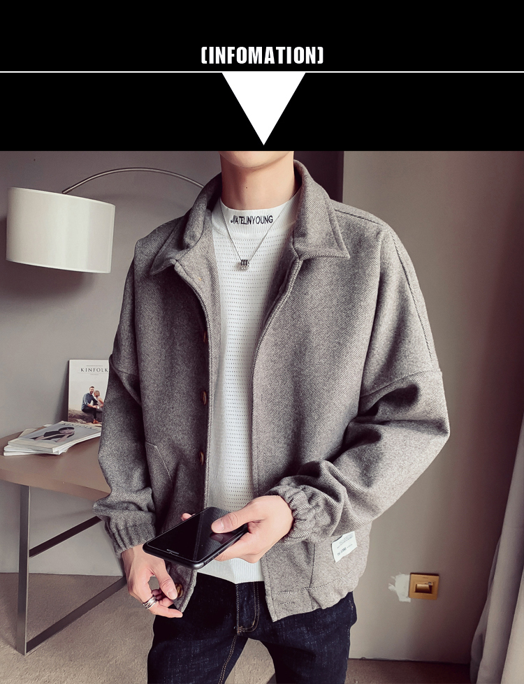 毛呢大衣男短款风衣2020秋冬季新款韩版潮流帅气宽松休闲呢子外套