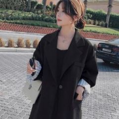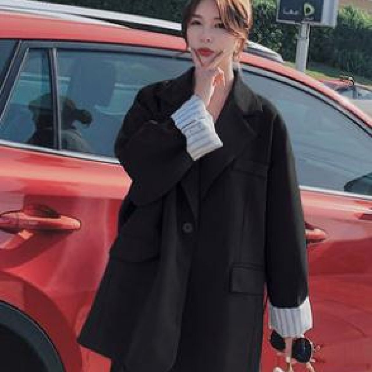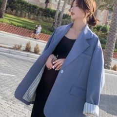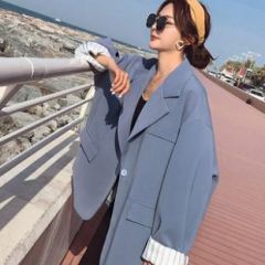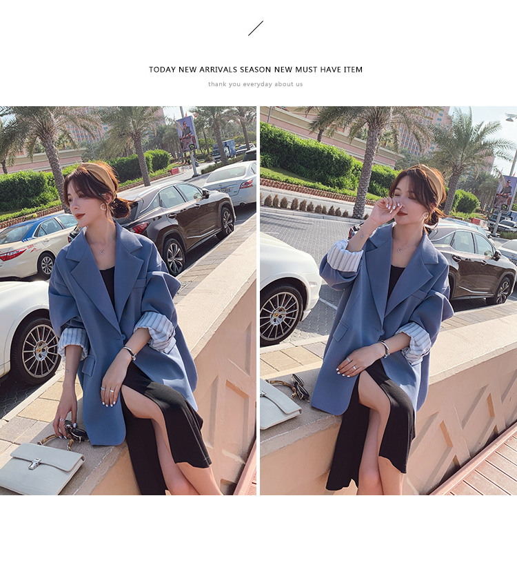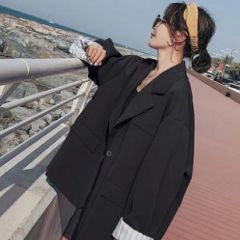 小西装外套女短款2020春秋季新款韩版chic宽松bf流行条纹撞色西服