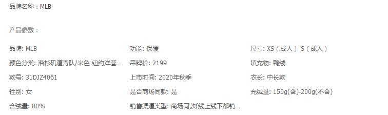MLB官方 男女羽绒服短款外套连帽加绒运动休闲时尚潮秋冬新款DJZ4