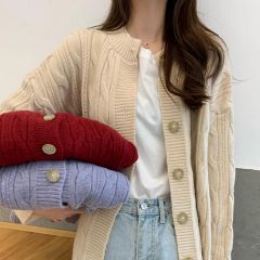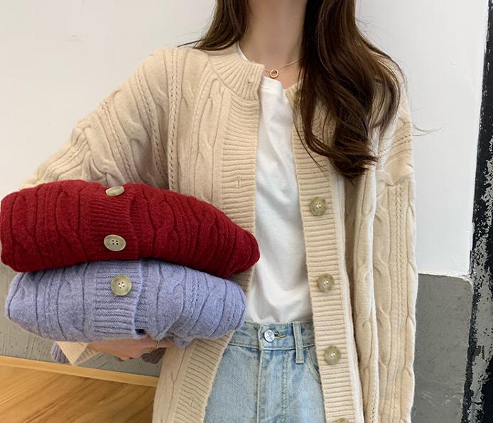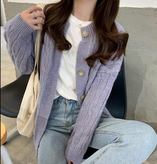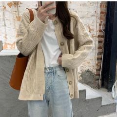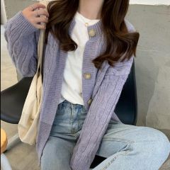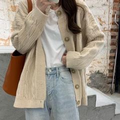毛衣女秋冬宽松外穿日系温柔慵懒风复古港味加厚麻花针织开衫外套