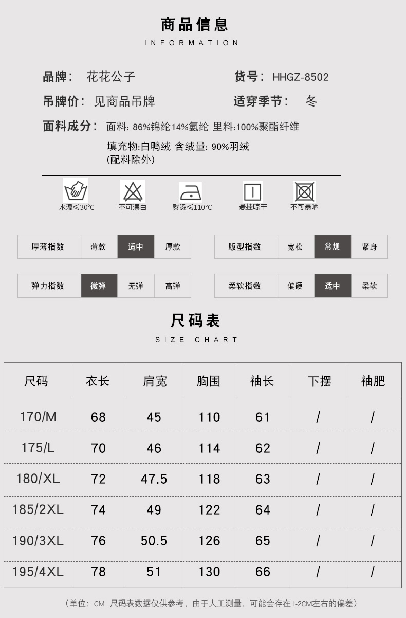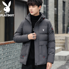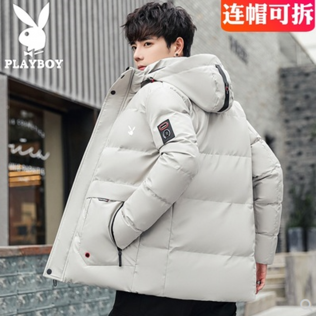 花花公子羽绒服男士冬季新款青年连帽可拆韩版加厚短款男生外套潮