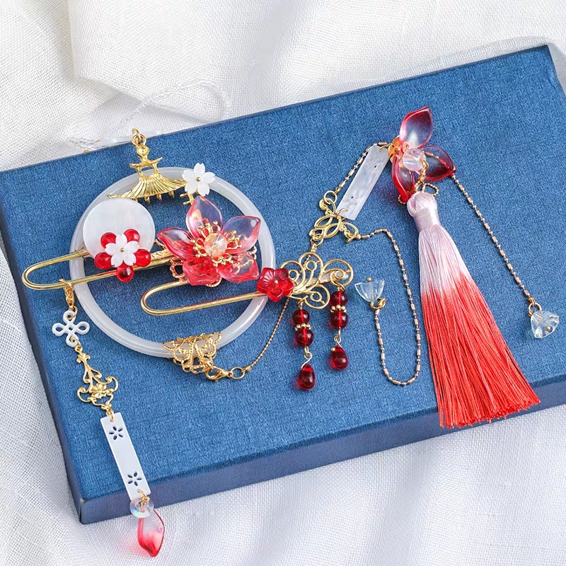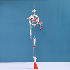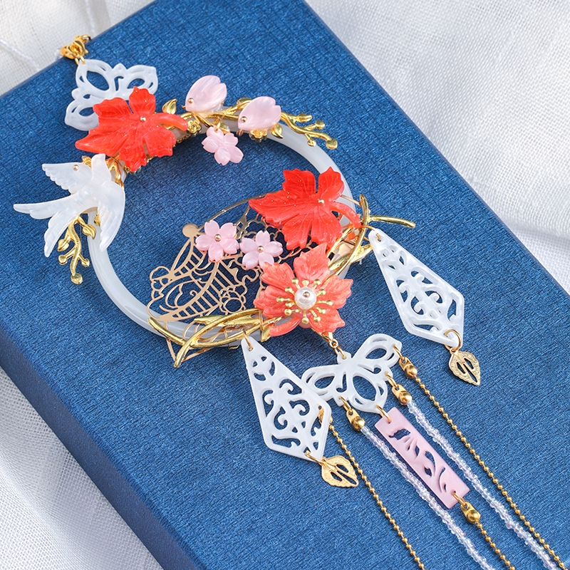 腰坠(禁步)压裙,是身份的象征,红白相间,流苏摇曳。