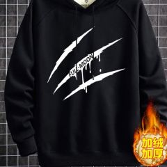 秋冬季潮牌加绒连帽爪痕抓痕卫衣国潮嘻哈宽松情侣外套